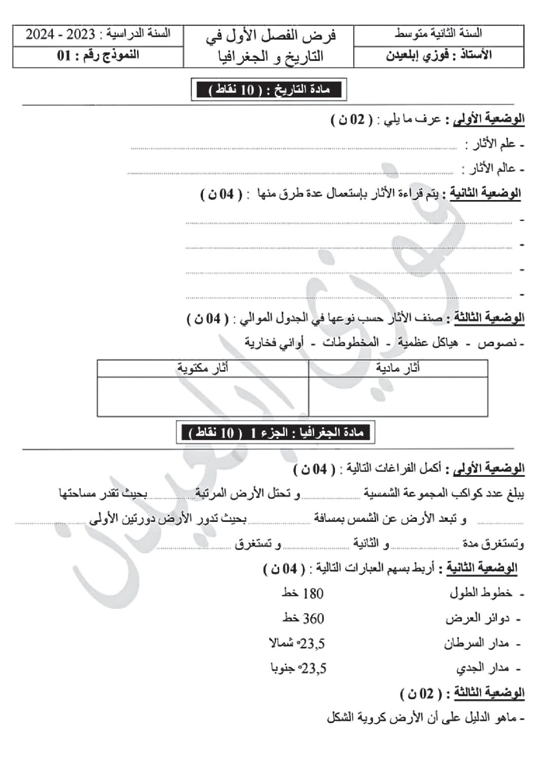 أكمل القراءة »فرض في التاريخ والجغرافيا الفصل الأول السنة الأولى متوسط رقم 36 مع التصحيح