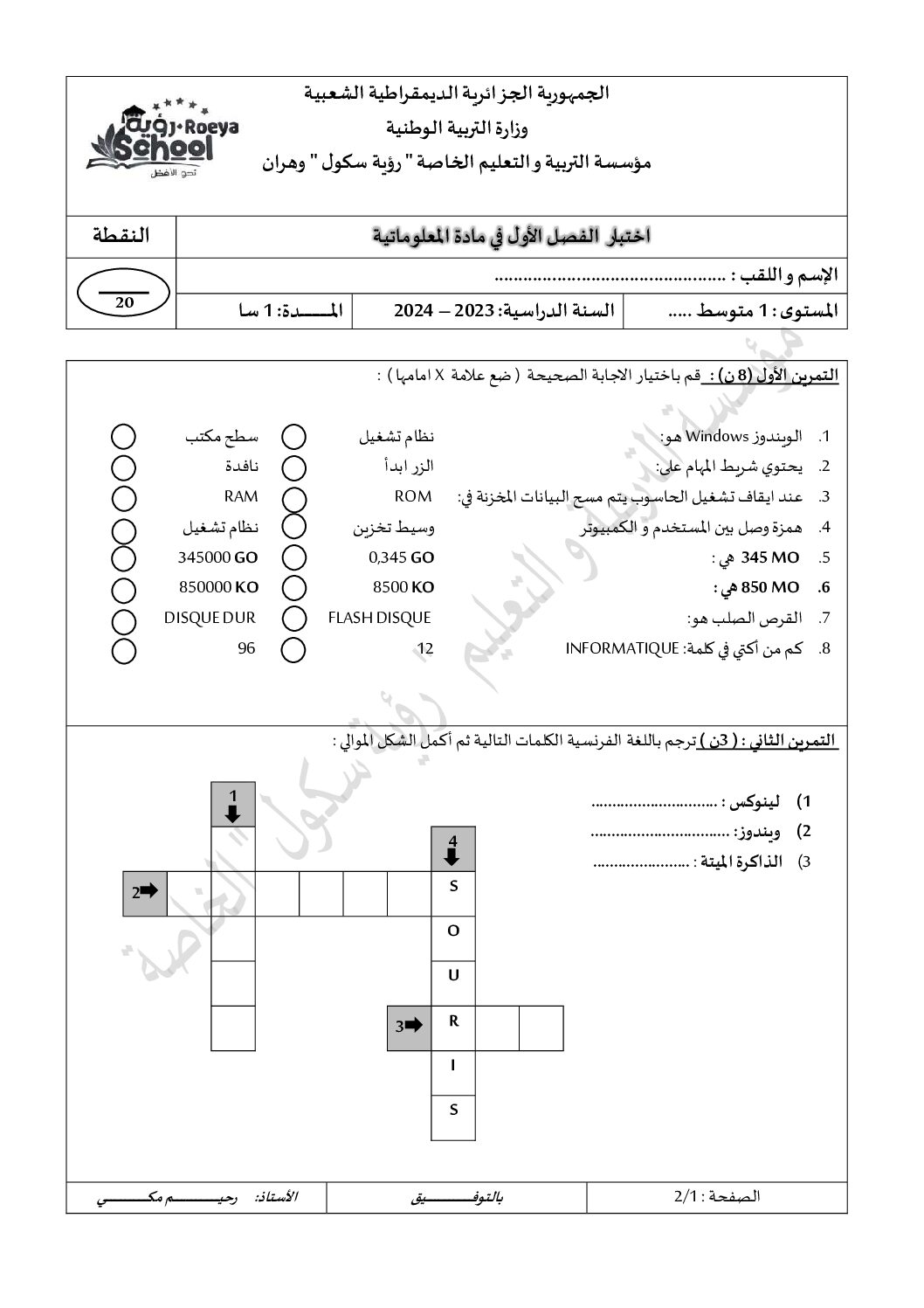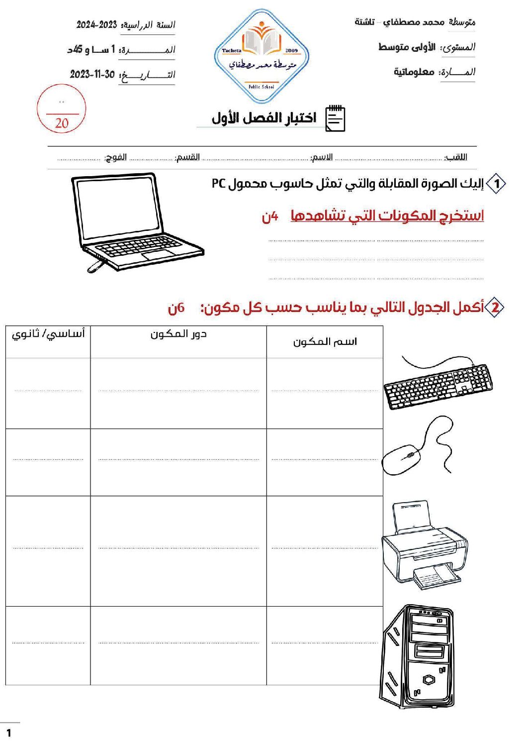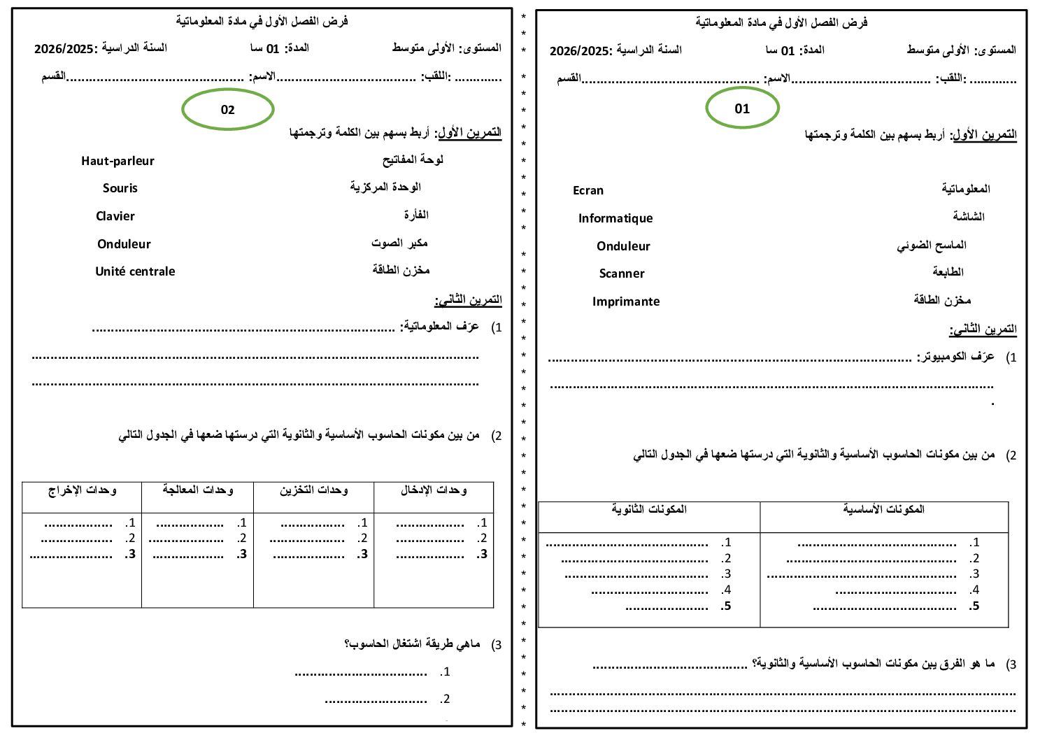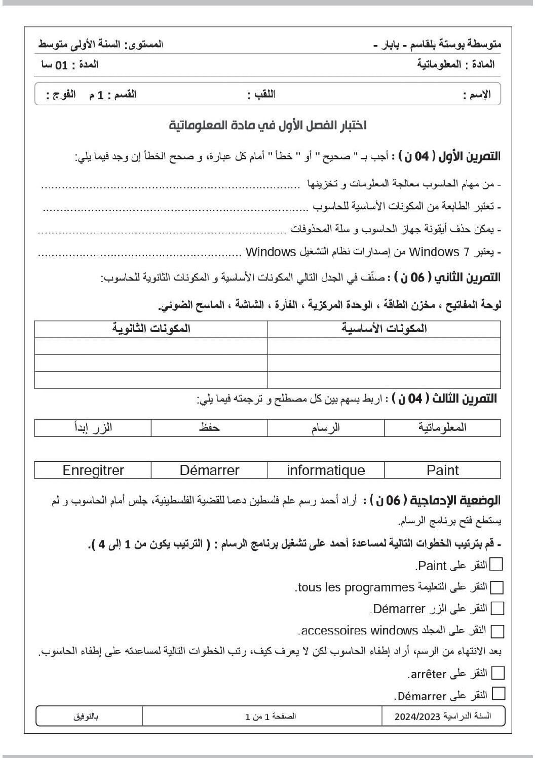 أكمل القراءة »إختبار في الإعلام الآلي الفصل الأول السنة الأولى متوسط رقم 40