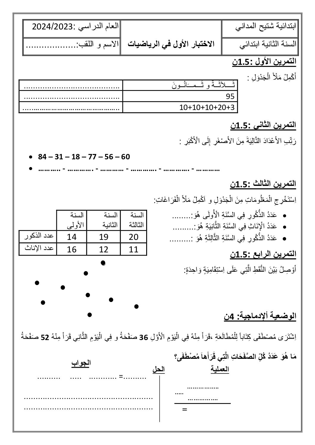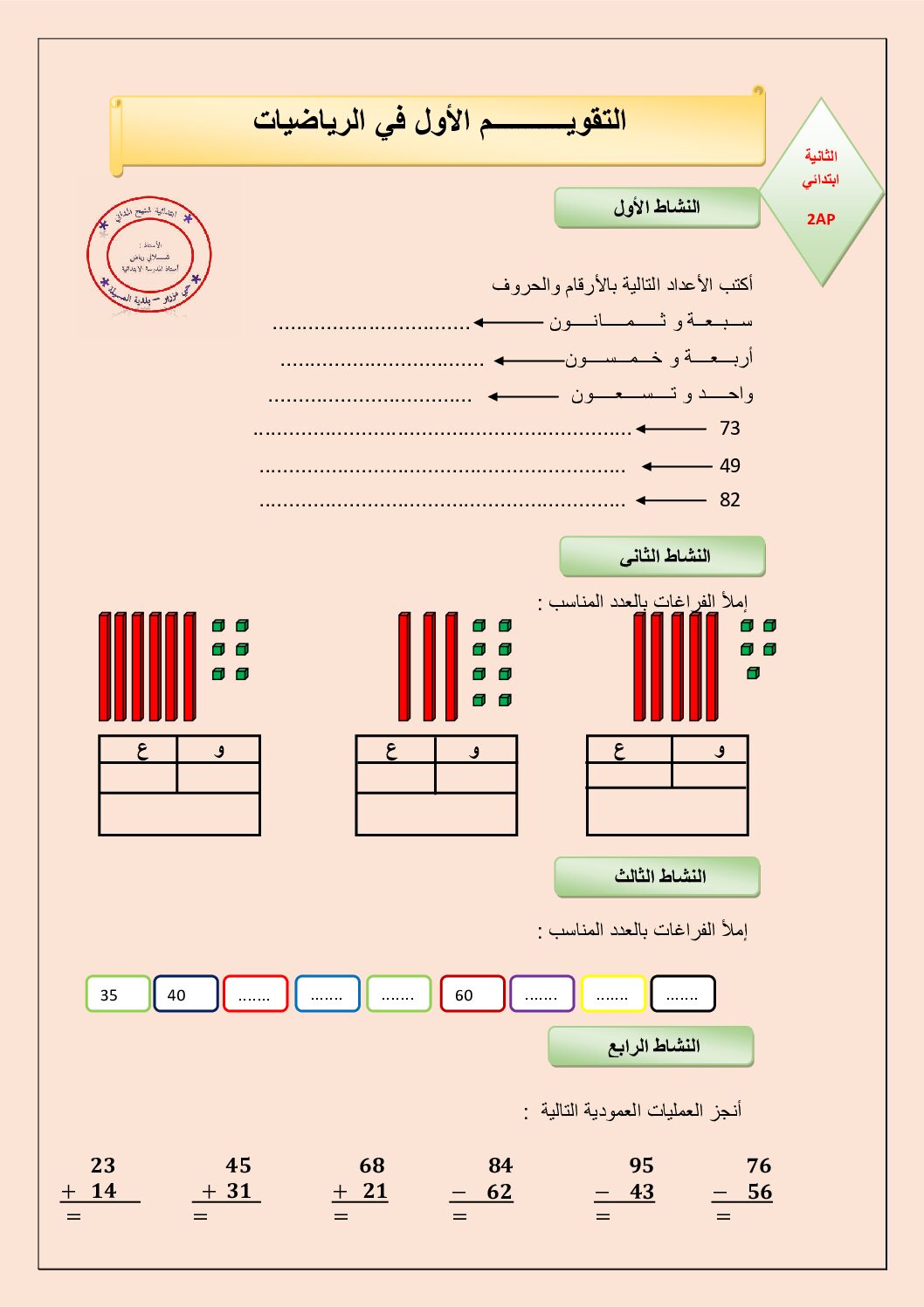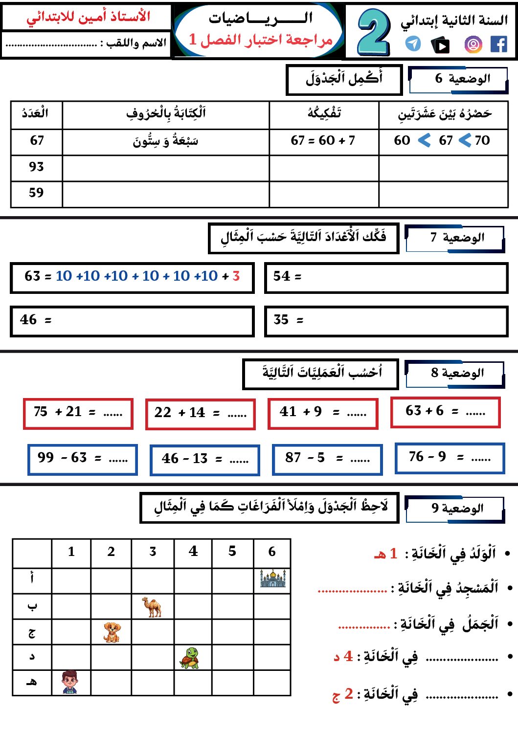أكمل القراءة »إختبار الفصل الأول في الرياضيات السنة الثانية ابتدائي رقم 136