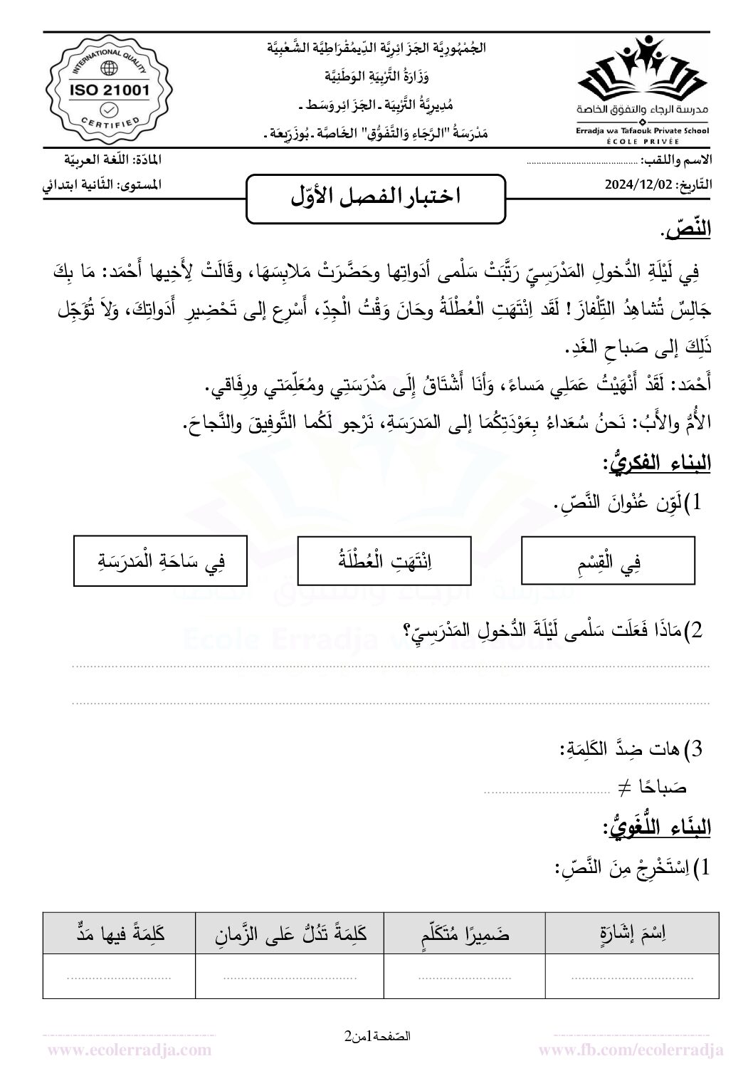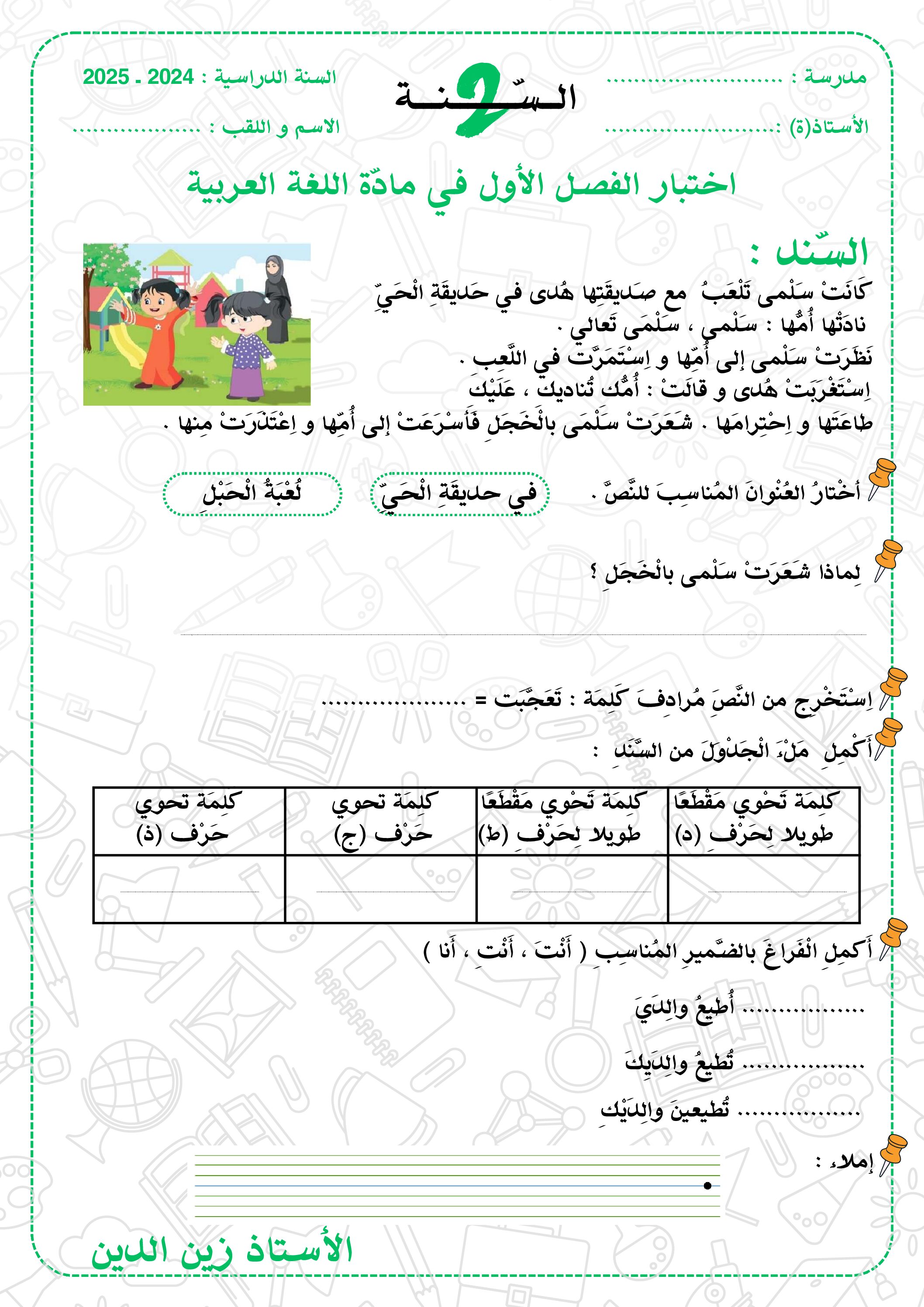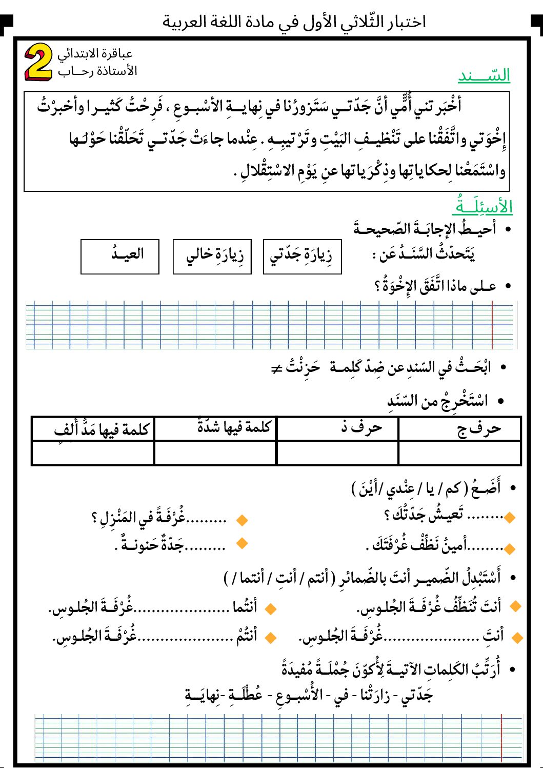 أكمل القراءة »إختبار الفصل الأول في اللغة العربية السنة الثانية ابتدائي رقم 104 مع التصحيح