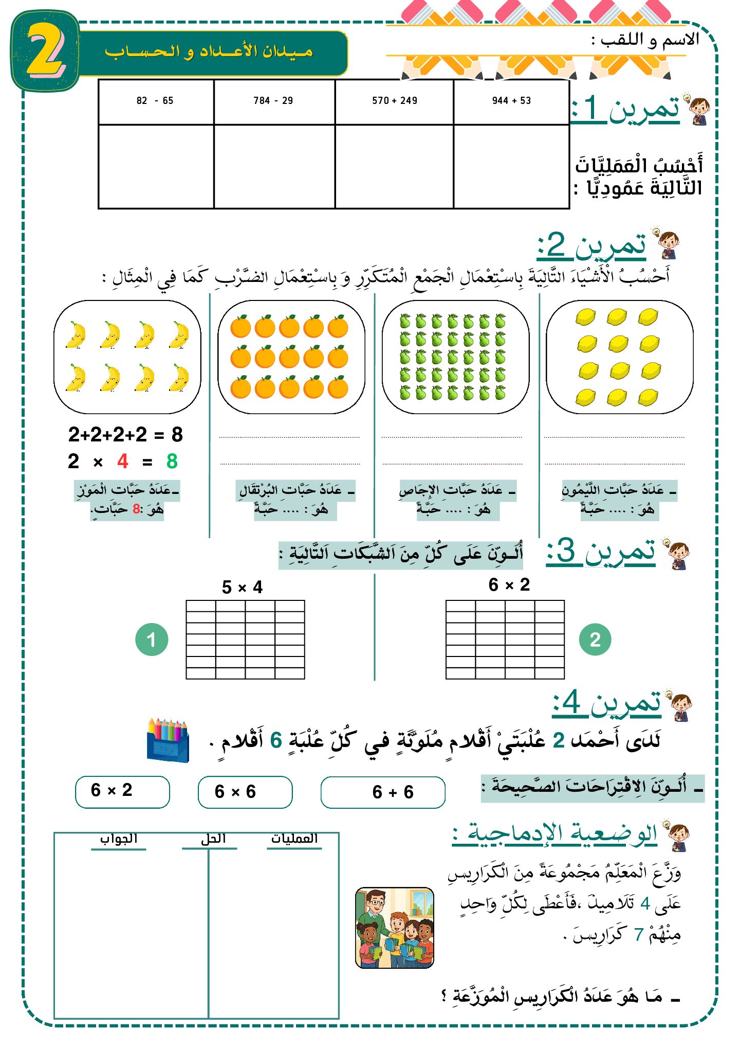 أكمل القراءة »إختبار الفصل الأول في الرياضيات السنة الثانية ابتدائي رقم 112 مع التصحيح