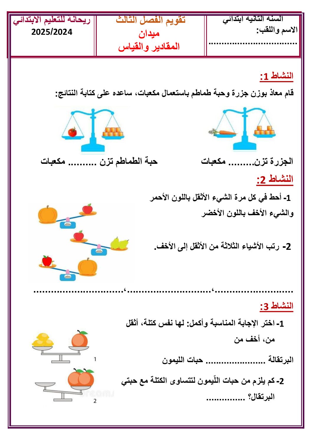 أكمل القراءة »إختبار الفصل الثالث في الرياضيات السنة الثانية ابتدائي رقم 44 مع التصحيح