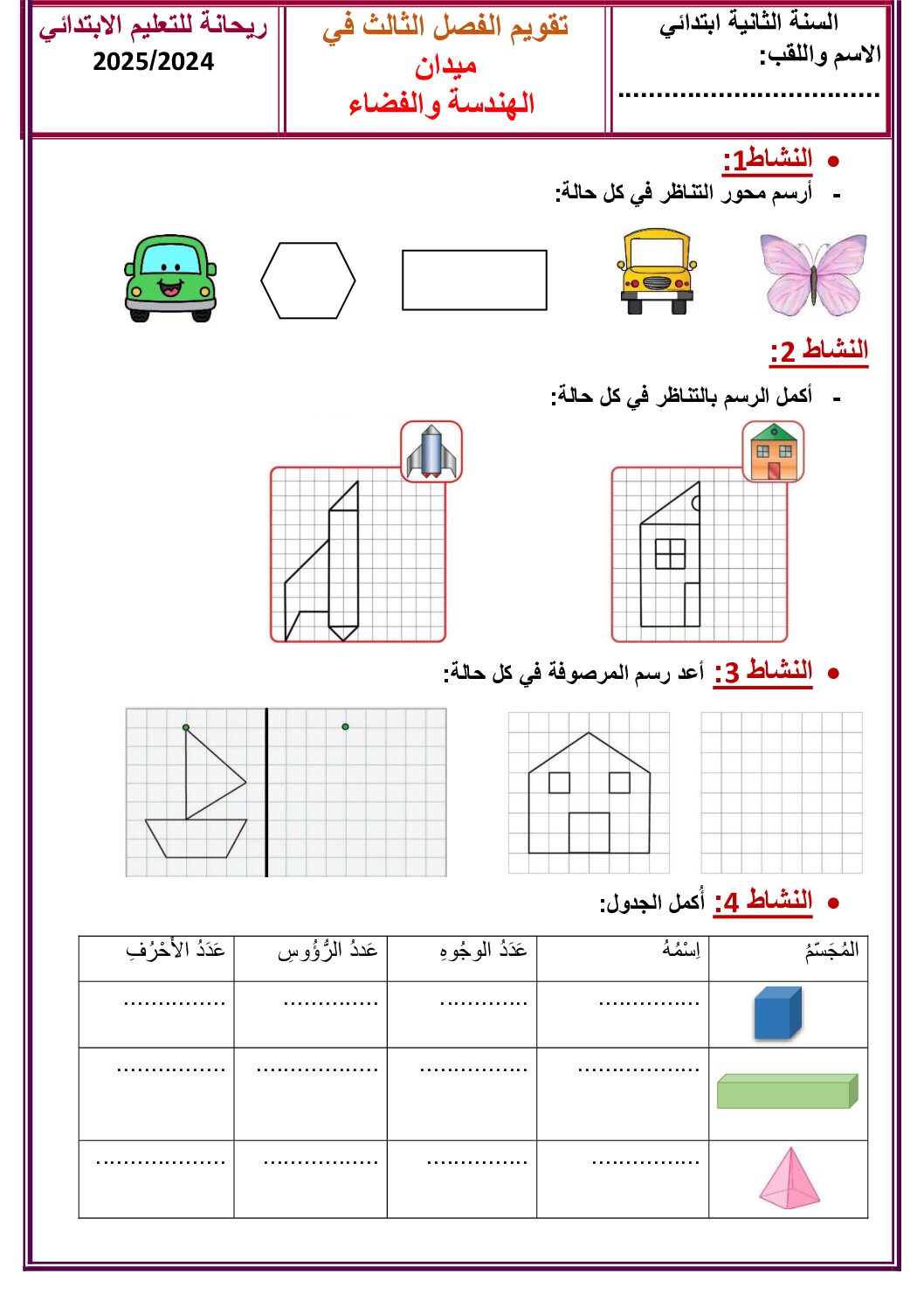 مادة الرياضيات للسنة السنة الثانية ابتدائي : نموذج لإمتحان في الفصل الثالث رقم 46- في مادة الرياضيات مستوى السنة الثانية ابتدائي الجيل الثاني ، السنة الدراسية: 2025/2026 مع التصحيح يمكن تصفح الإختبار مباشرة عبر موقع الدراسة الجزائري أو تحميله مباشرة بصيغة PDF بالضغط أعلاه على: .: تحميل :. الرياضيات السنة الثانية ابتدائي