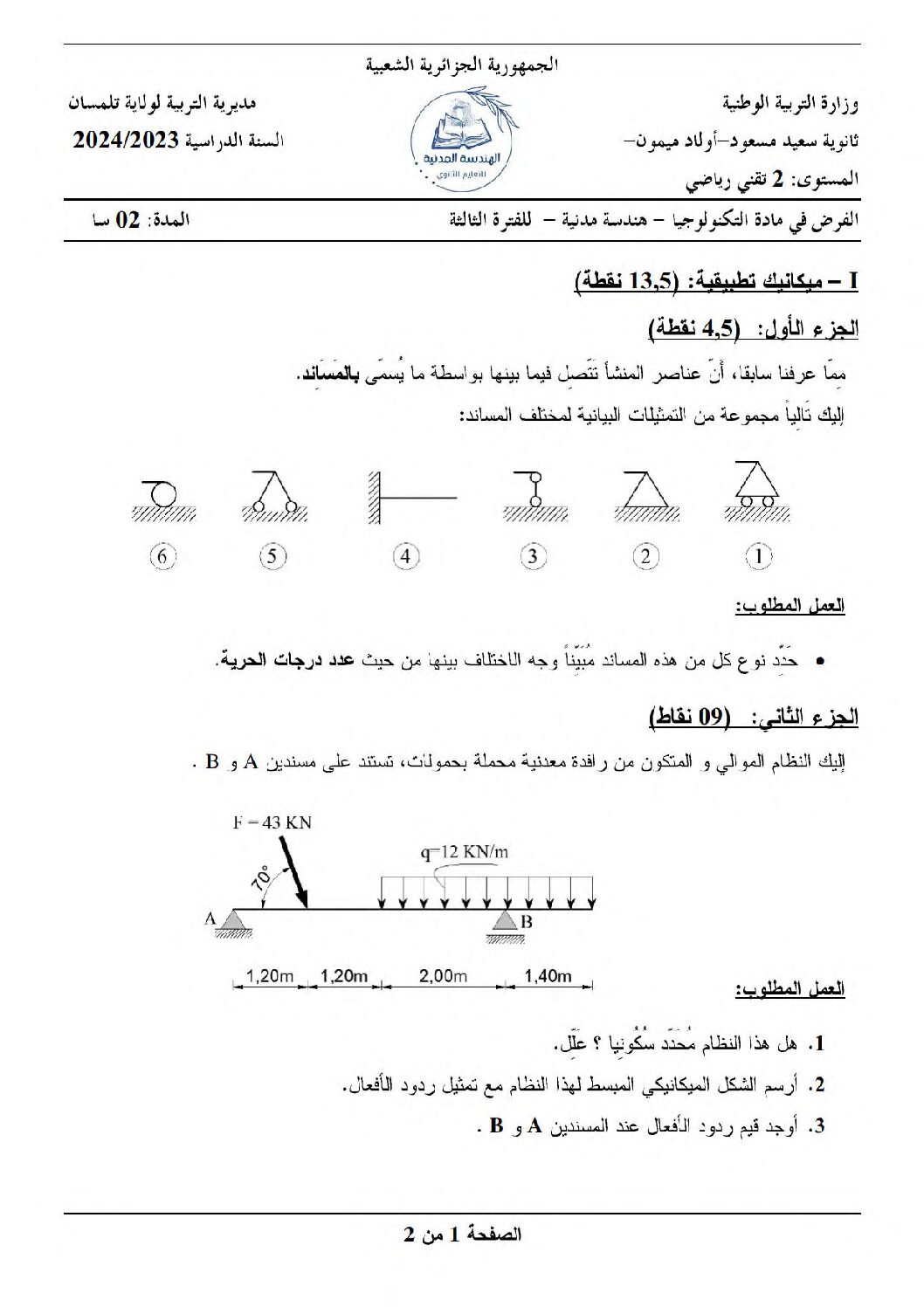 مادة التكنولوجيا هندسة مدنية للسنة الثانية 2 ثانوي دروس مفصلة، فروض واختبارات، تمارين محلولة: نموذج لإمتحان في الفصل الأول رقم 11- في مادة التكنولوجيا الهندسة المدنية مستوى السنة الثانية ثانوي شعبة تسيير واقتصاد، السنة الدراسية: 2024/2025 مع التصحيح يمكن تصفح الإختبار مباشرة عبر موقع الدراسة الجزائري أو تحميله مباشرة بصيغة PDF بالضغط أعلاه على: .: تحميل :. الهندسة …