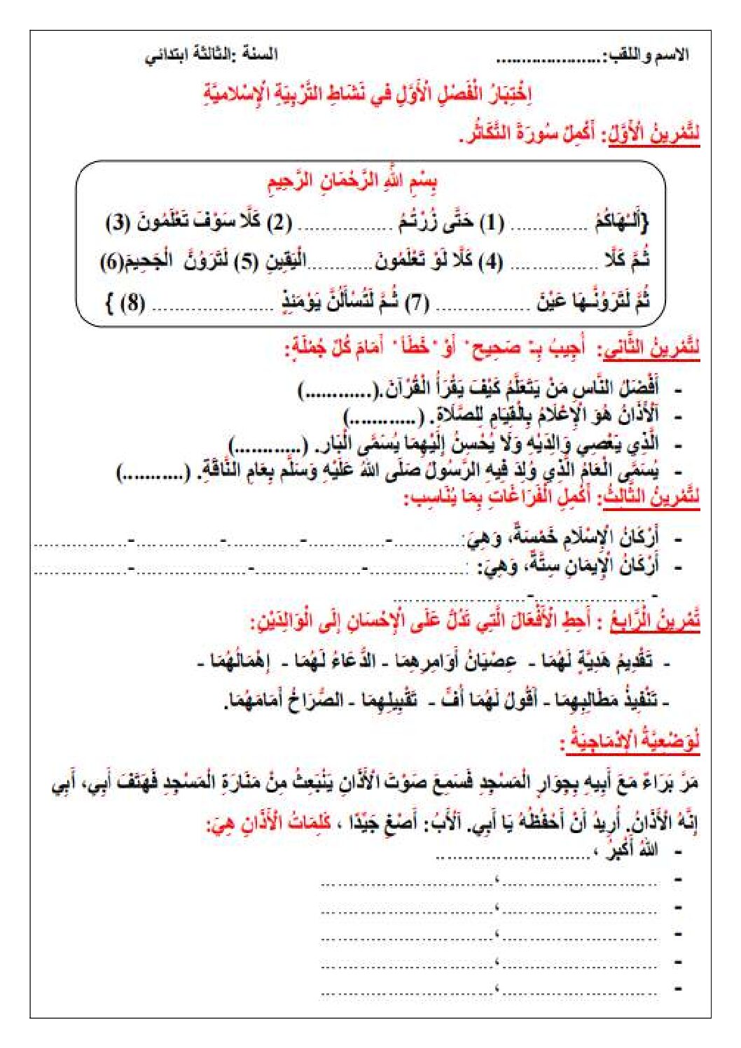 مادة التربية الإسلامية للسنة الثالثة ابتدائي : نموذج لإمتحان في الفصل الأول رقم 74- في مادة الإسلامية مستوى السنة الثالثة ابتدائي الجيل الثاني ، السنة الدراسية: 2025/2026 مع التصحيح يمكن تصفح الإختبار مباشرة عبر موقع الدراسة الجزائري أو تحميله مباشرة بصيغة PDF بالضغط أعلاه على: .: تحميل :. التربية الإسلامية السنة الثالثة ابتدائي