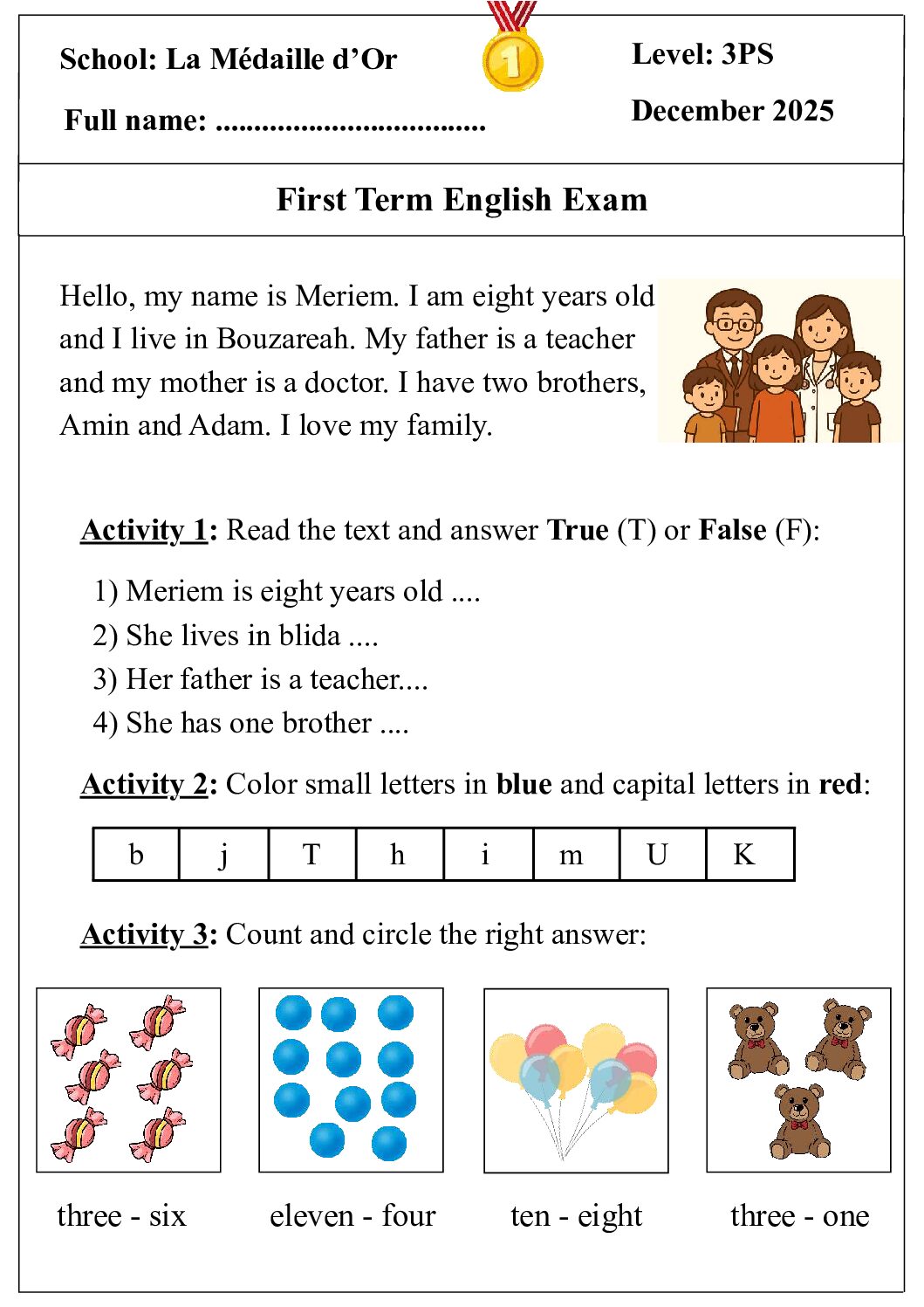أكمل القراءة »إختبار الفصل الأول في اللغة الإنجليزية السنة الثالثة ابتدائي رقم 64 مع التصحيح