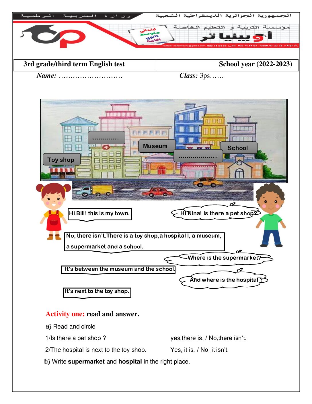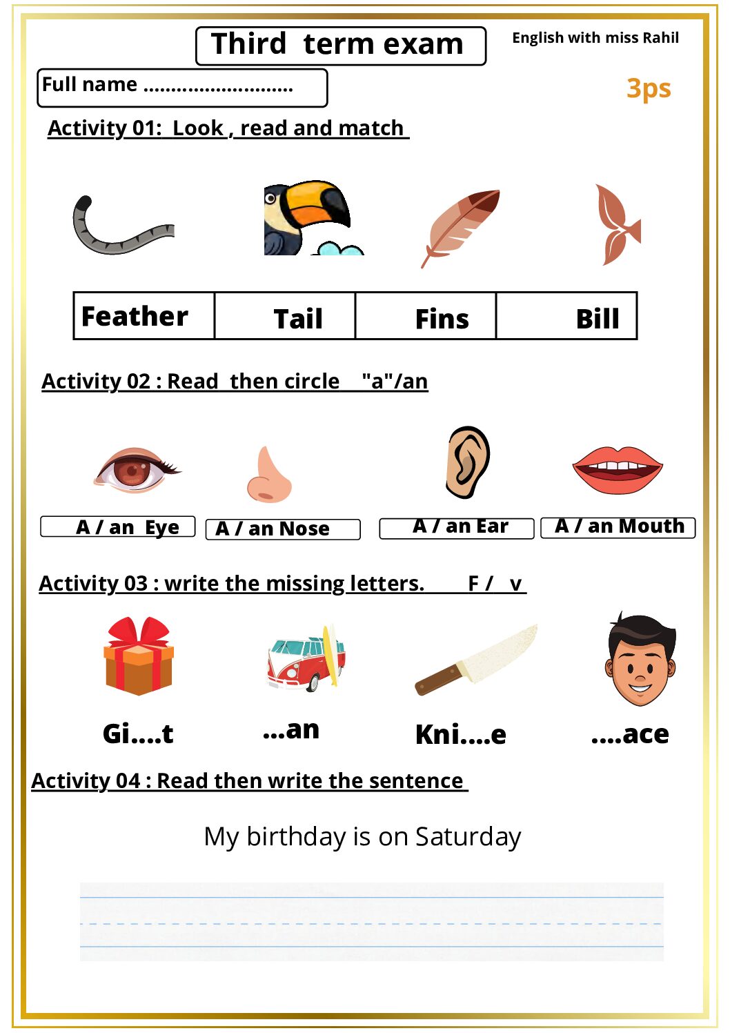 أكمل القراءة »إختبار الفصل الثالث في اللغة الإنجليزية السنة الثالثة ابتدائي رقم 3