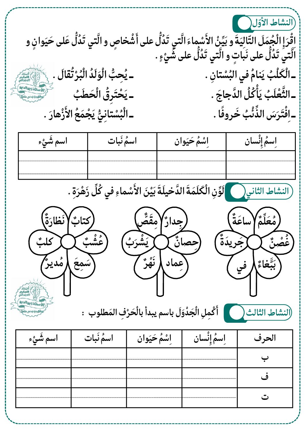 إختبار الفصل الأول في اللغة العربية السنة الثالثة ابتدائي رقم 143