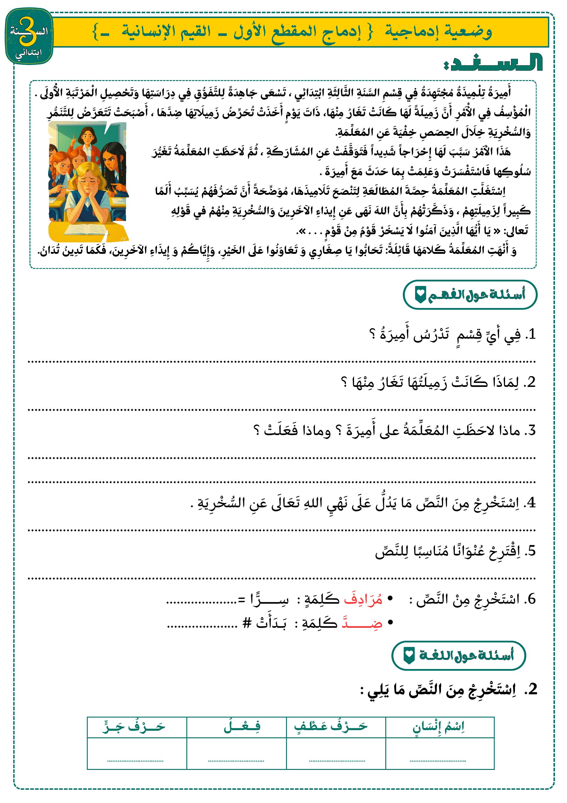 مادة اللغة العربية للسنة الثالثة ابتدائي : نموذج لإمتحان في الفصل الأول رقم 127- في مادة اللغة العربية مستوى السنة الثالثة ابتدائي الجيل الثاني ، السنة الدراسية: 2025/2026 مع التصحيح يمكن تصفح الإختبار مباشرة عبر موقع الدراسة الجزائري أو تحميله مباشرة بصيغة PDF بالضغط أعلاه على: .: تحميل :. اللغة العربية السنة الثالثة ابتدائي