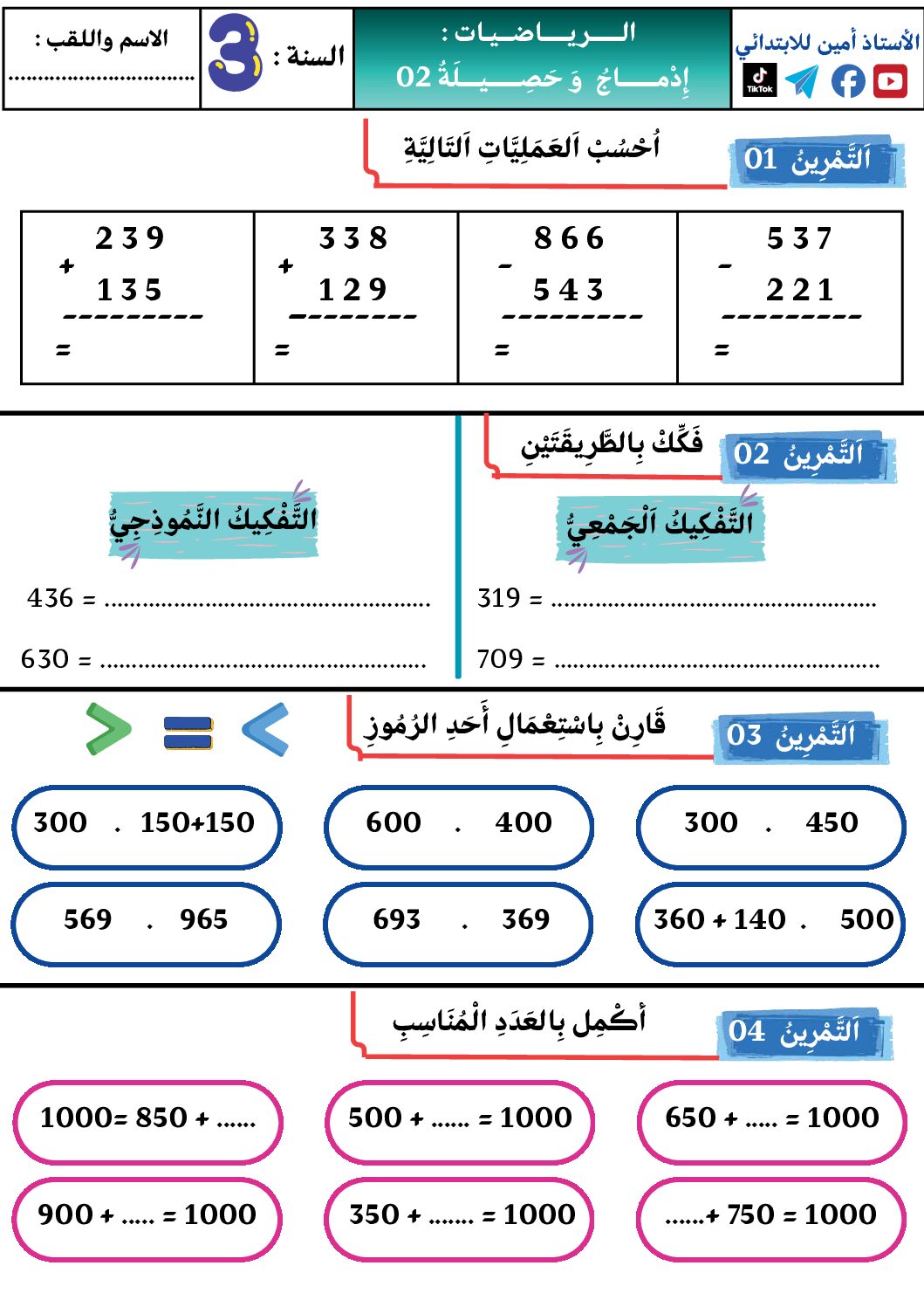أكمل القراءة »إختبار الفصل الأول في الرياضيات السنة الثالثة ابتدائي رقم 138 مع التصحيح