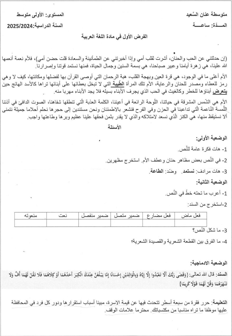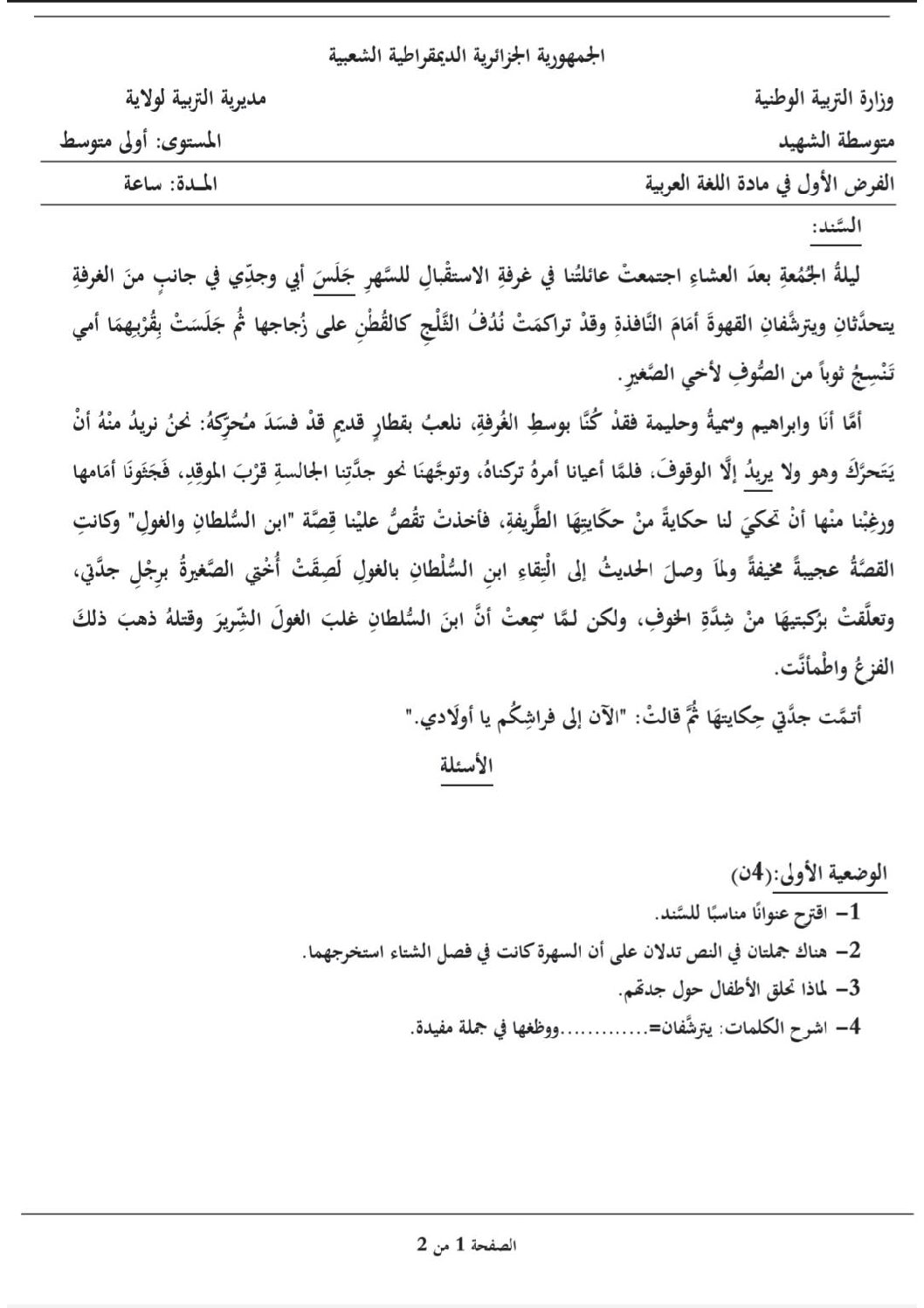 أكمل القراءة »فرض في اللغة العربية الفصل الأول السنة الأولى متوسط رقم 59 مع التصحيح