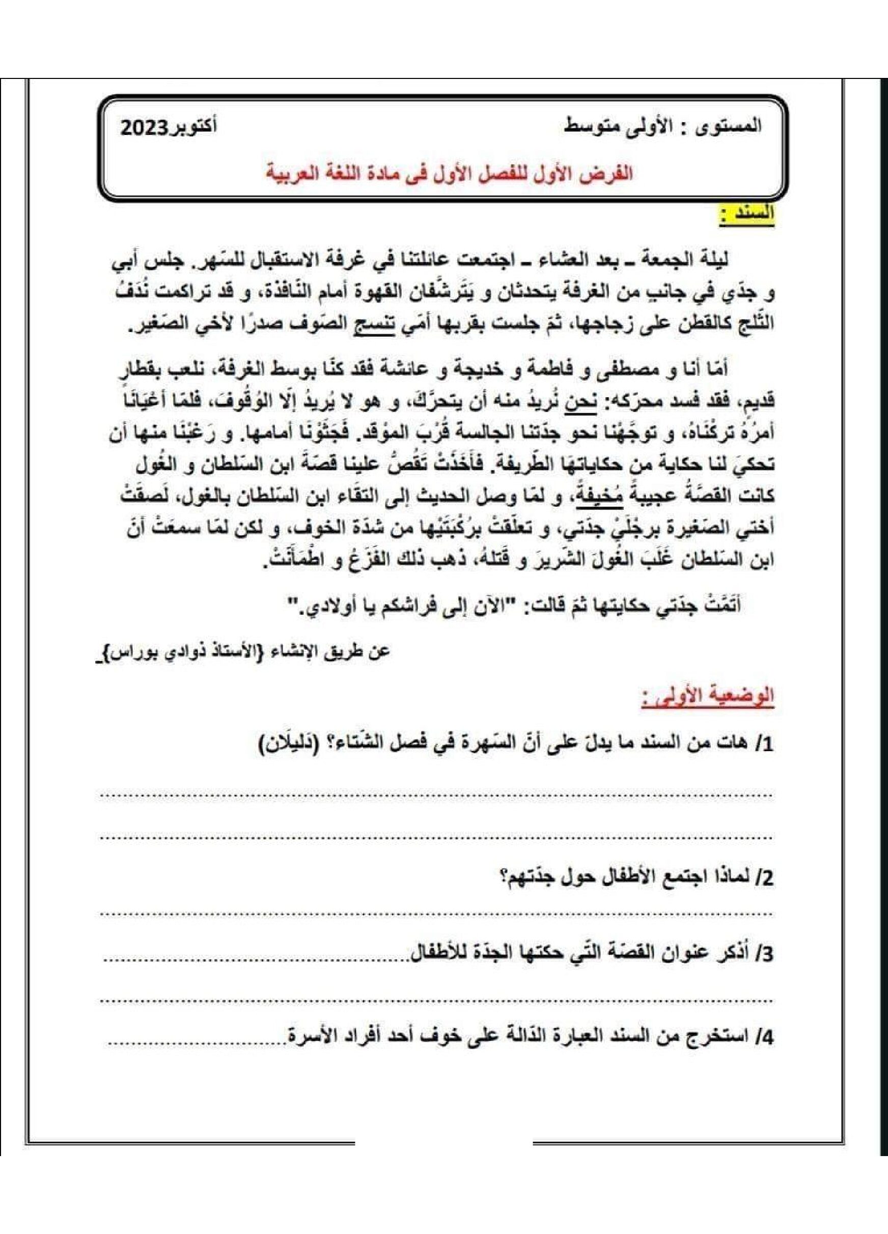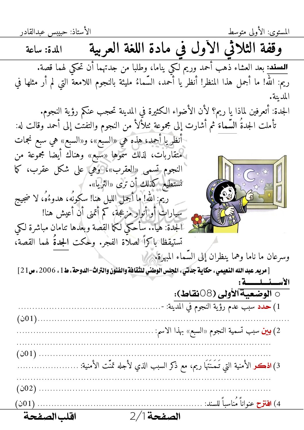 أكمل القراءة »فرض في اللغة العربية الفصل الأول السنة الأولى متوسط رقم 58