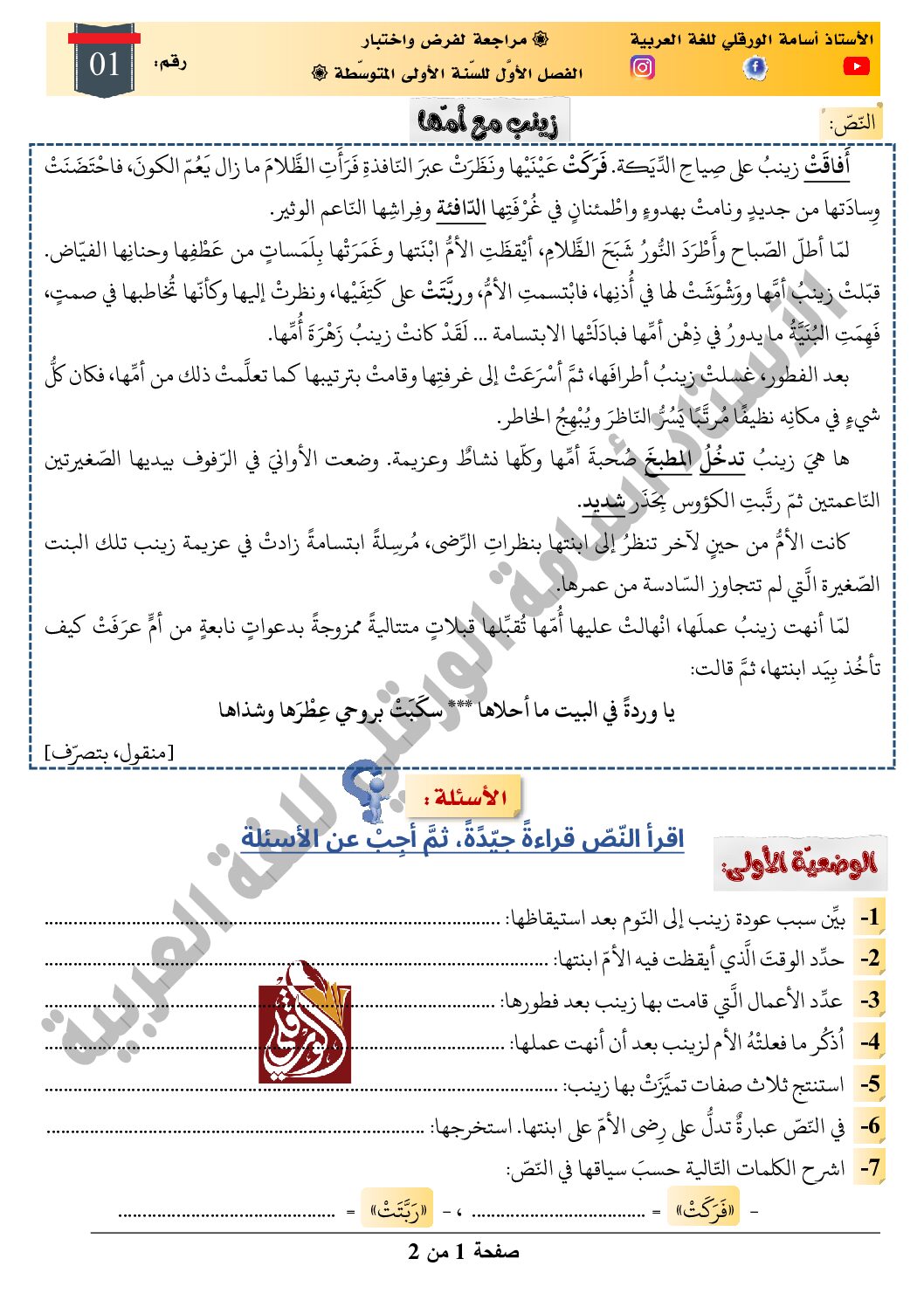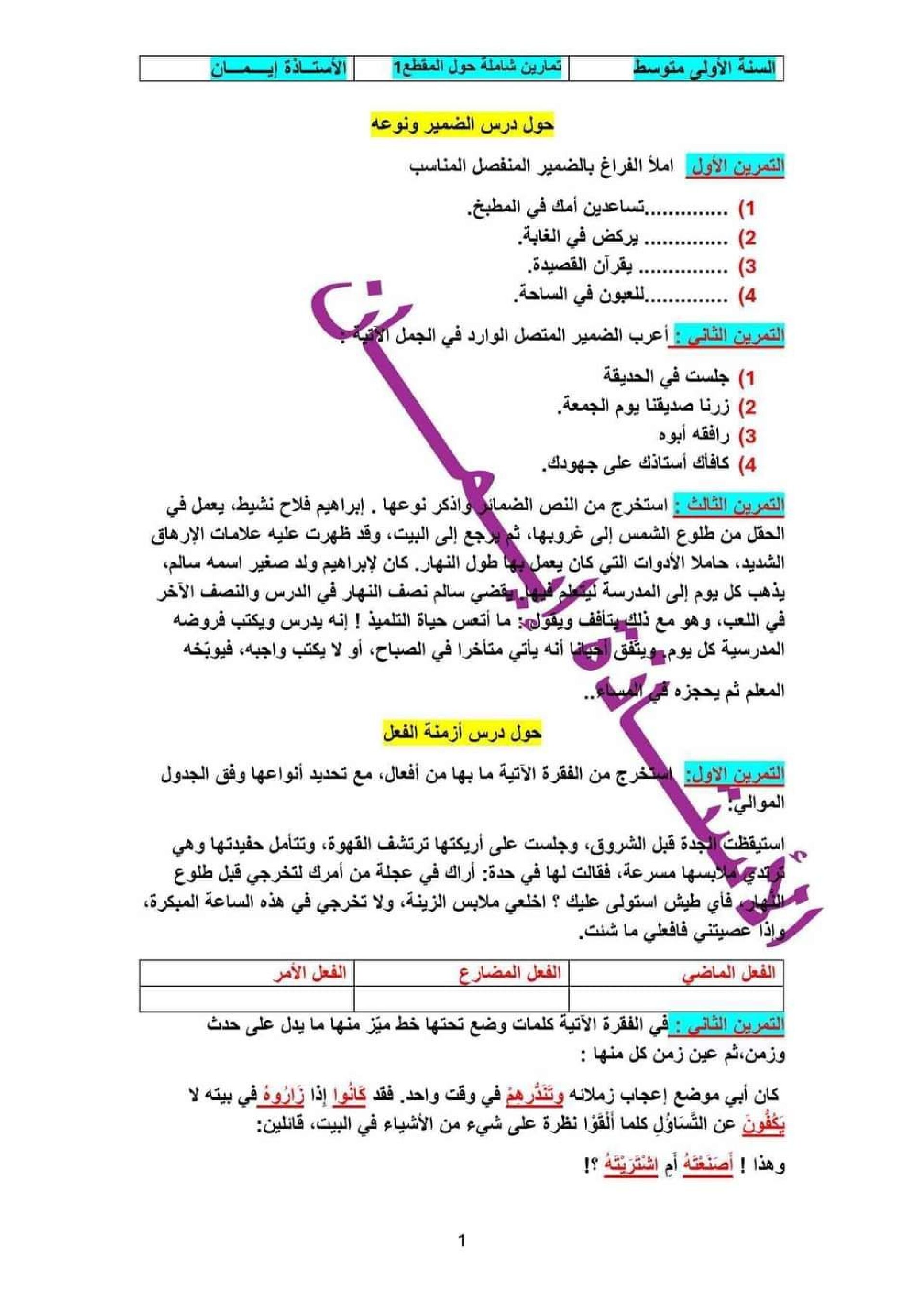 أكمل القراءة »فرض في اللغة العربية الفصل الأول السنة الأولى متوسط رقم 60