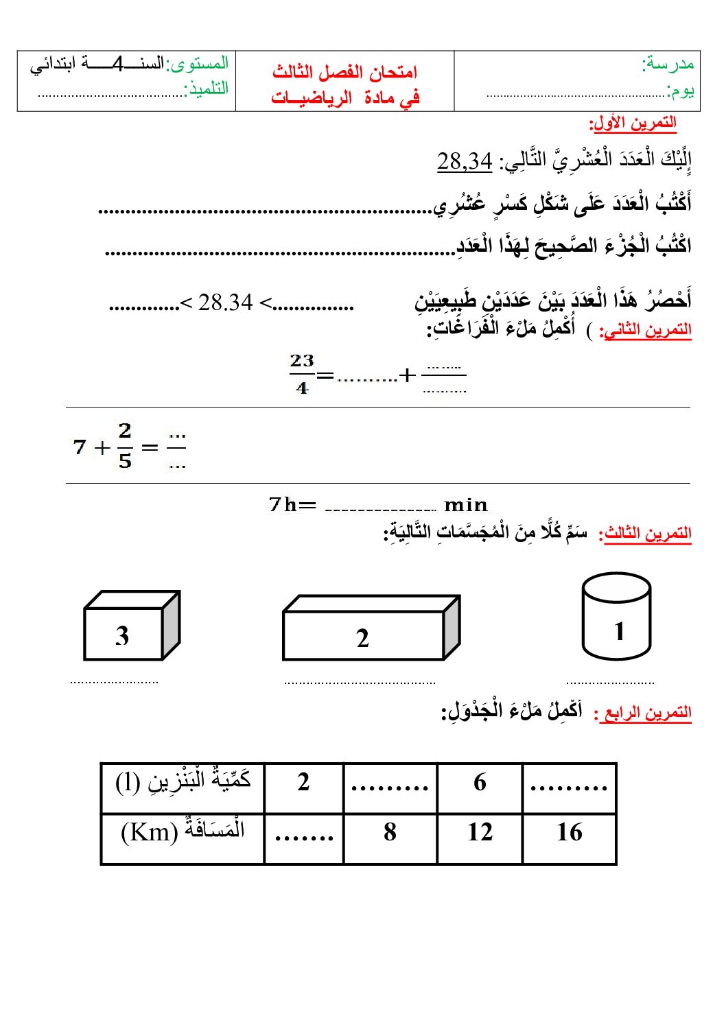 أكمل القراءة »إختبار الفصل الأول في الرياضيات السنة الرابعة ابتدائي رقم 118