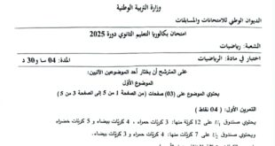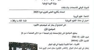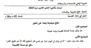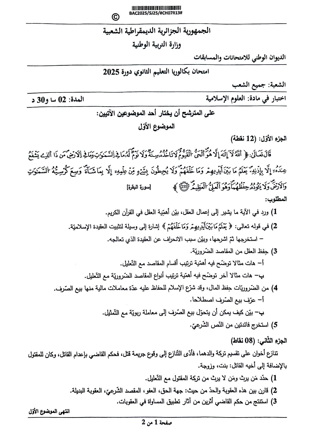 موضوع امتحان بكالوريا دورة جوان 2025 BAC : شعبة: علوم تجريبية، رياضيات، تقني رياضي، تسيير واقتصاد، آداب وفلسفة، لغات أجنبية، موضوع اختبار مادة العلوم الإسلامية لبكالوريا 2025: