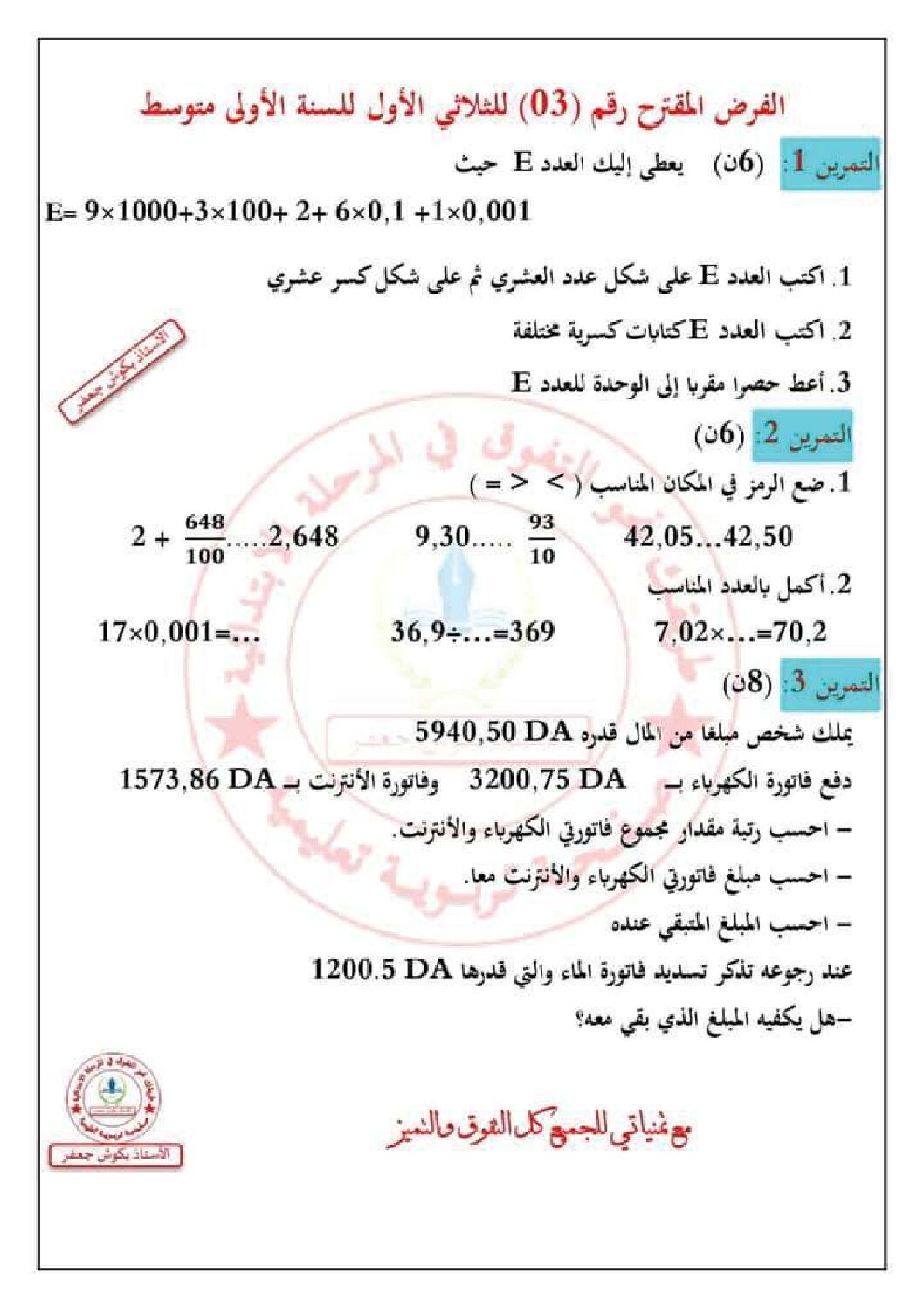 أكمل القراءة »فرض في التربية المدنية الفصل الأول السنة الأولى متوسط رقم 50