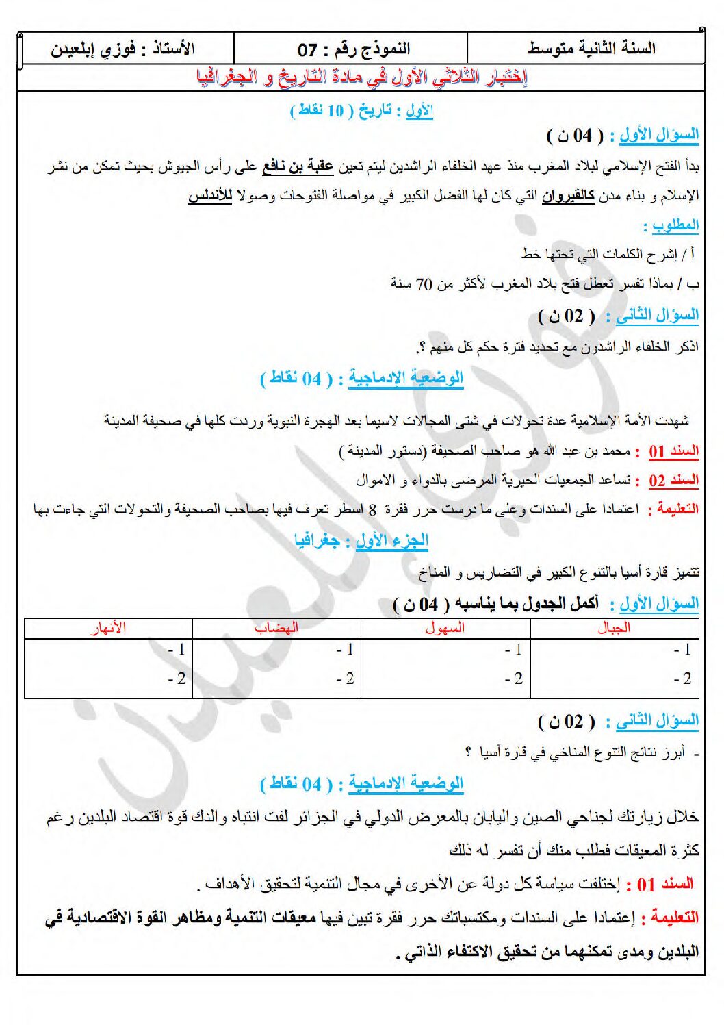 أكمل القراءة »اختبار في التاريخ والجغرافيا الفصل الأول السنة الثانية متوسط رقم 50