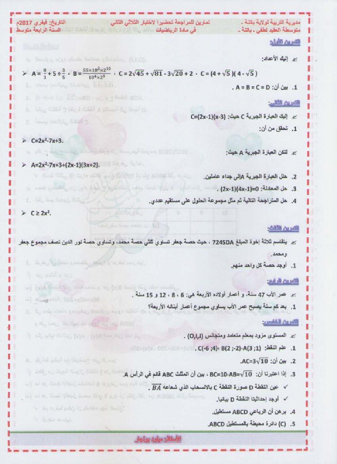 إختبار الثلاثي الثالث لغة فرنسية سنة 2 متوسط 4