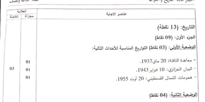 أكمل القراءة »اختبار في التاريخ والجغرافيا الفصل الأول السنة الأولى متوسط رقم 54 مع التصحيح