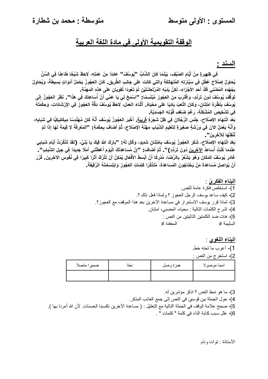 أكمل القراءة »فرض في اللغة العربية الفصل الأول السنة الأولى متوسط رقم 63