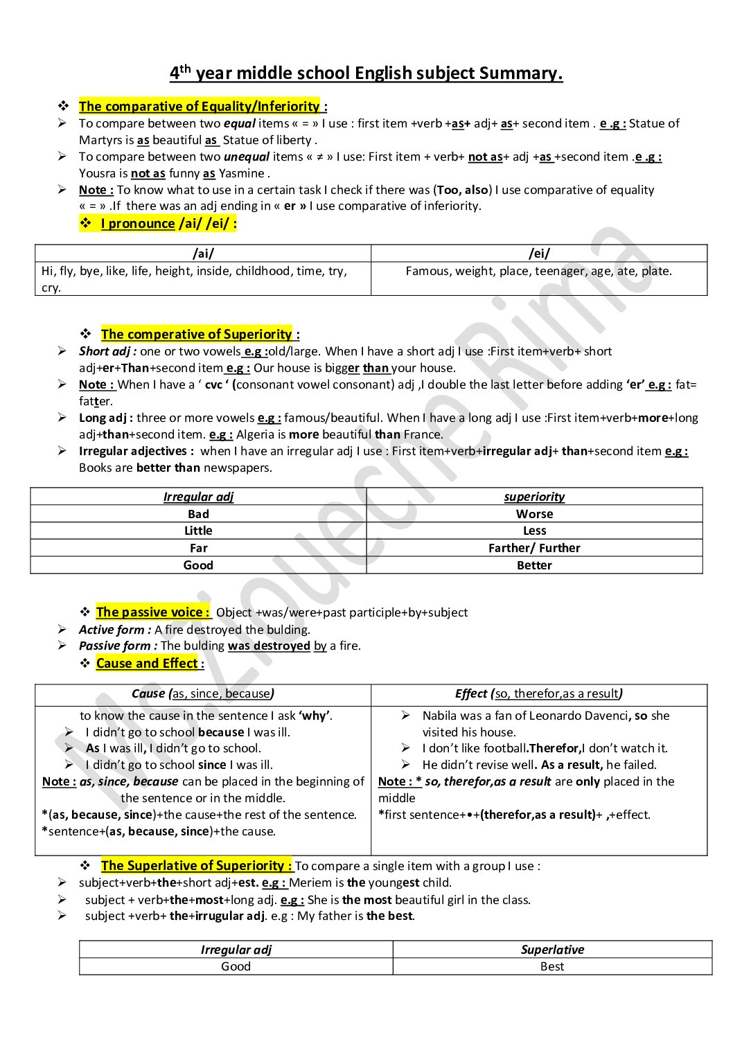 ملخص دروس الفصل الاول في الانجليزية للاستاذة حياة 4 متوسط