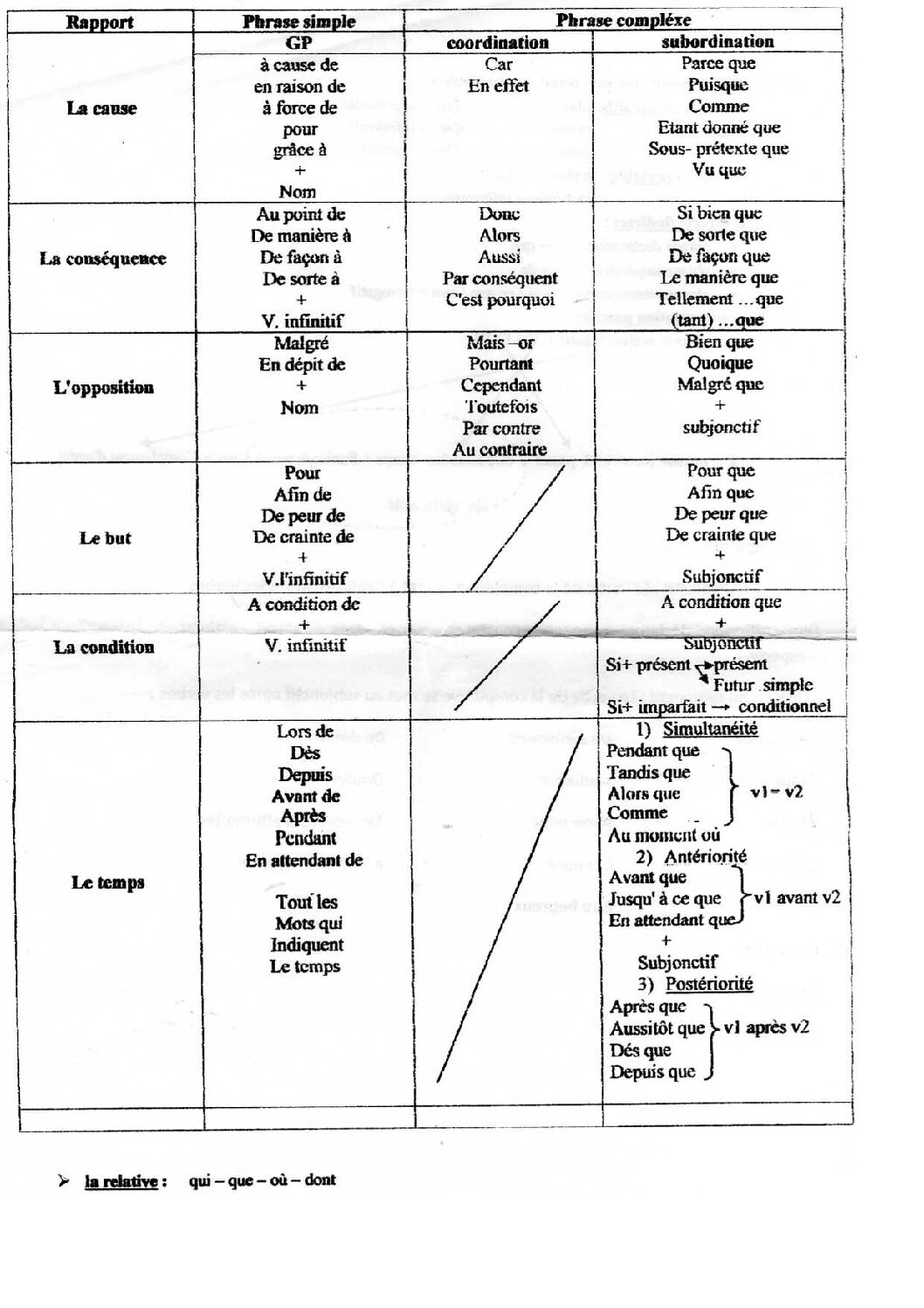جدول يلخص أدوات الربط في اللغة الفرنسية 4 متوسط Les rapports logiques