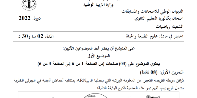 بكالوريا 2013 شعبة رياضيات – اختبار في مادة علوم الطبيعة و الحياة وفيما يلي موضوع البكالوريا كاملا: يمكن تصفح الموضوع مباشرة عبر موقع الدراسة الجزائري أو تحميله مباشرة بصيغة PDF بالضغط أعلاه على: .: تحميل :.
