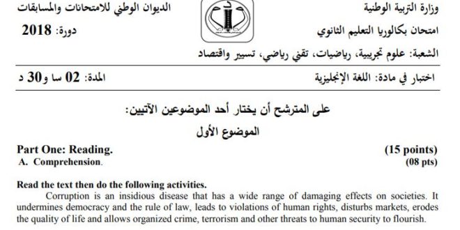 أكمل القراءة »تصحيح موضوع اللغة الإنجليزية بكالوريا 2023 شعب علمية
