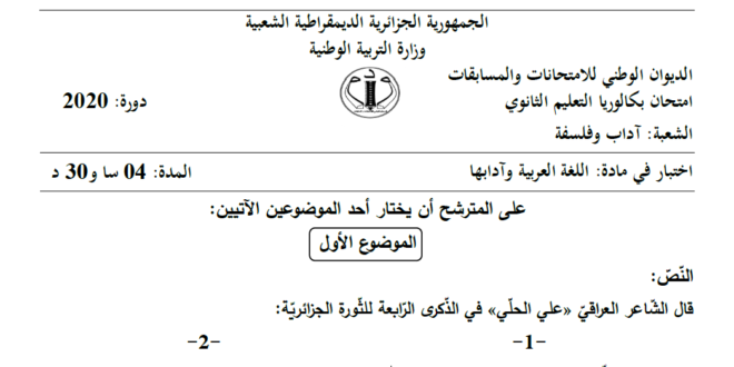 موضوع امتحان بكالوريا دورة جوان 2023 BAC : شعبة: لغات اجنبية، موضوع اختبار مادة اللغة الفرنسية لبكالوريا 2023: وفيما يلي موضوع البكالوريا : يمكن تصفح الموضوع مباشرة عبر موقع الدراسة الجزائري أو تحميله مباشرة بصيغة PDF بالضغط أعلاه على: .: تحميل :. تصحيح اختبار اللغة الفرنسية مواضيع و حلول بكالوريا 2023 جميع المواد