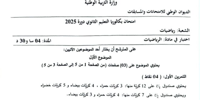 أكمل القراءة »موضوع الرياضيات بكالوريا 2020 شعب أدبية