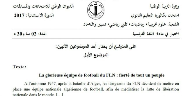 أكمل القراءة »بكالوريا 2017 الإستثنائية – اختبار اللغة الفرنسية شعبة لغات أجنبية