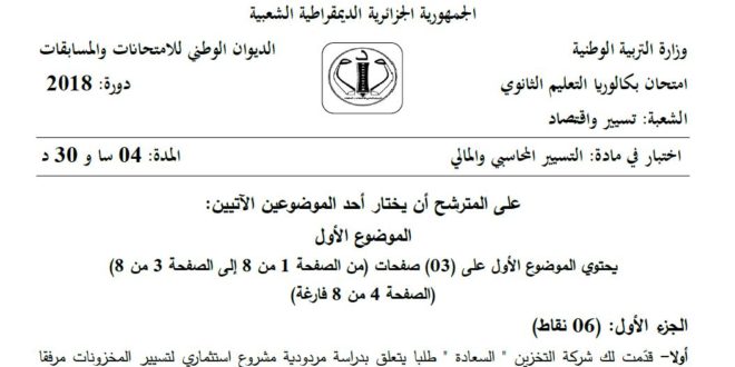 مواضيع و حلول بكالوريا 2017 BAC الاستثنائية جميع الشعب: موضوع امتحان بكالوريا دورة جوان 2017 BAC الدورة الاستثنائية: شعبة: تسيير و اقتصاد ، اختبار مادةالرياضيات لبكالوريا 2017: وفيما يلي موضوع البكالوريا : يمكن تصفح الموضوع مباشرة عبر موقع الدراسة الجزائري أو تحميله مباشرة بصيغة PDF بالضغط أعلاه على: .: تحميل :.