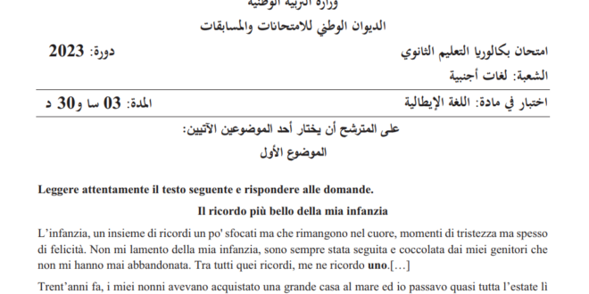 أكمل القراءة »تصحيح بكالوريا 2017 – اختبار اللغة الإيطالية شعبة لغات أجنبية