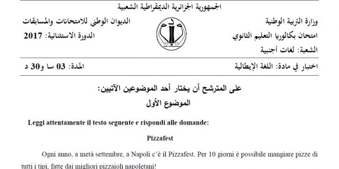 أكمل القراءة »موضوع بكالوريا 2018 في اللغة الإيطالية شعبة لغات أجنبية