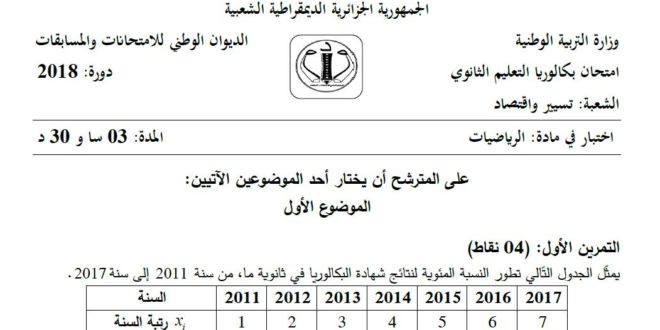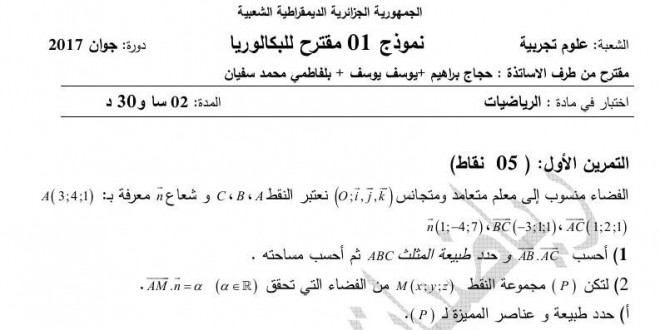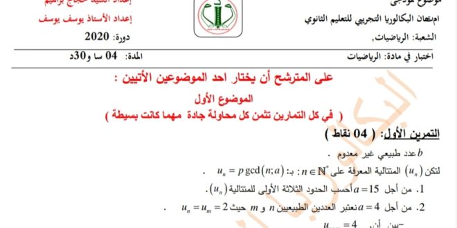 موضوع بكالوريا 2008 في الرياضيات و التصحيح المفصل لموضوع بكالوريا 2008 شعبة علوم تجريبية من قرص المغني في الرياضيات يمكن تصفح الامتحان و تصحيحه المفصل مباشرة عبر موقع الدراسة الجزائري أو تحميله مباشرة بصيغة PDF بالضغط أعلاه على: .: تحميل :.