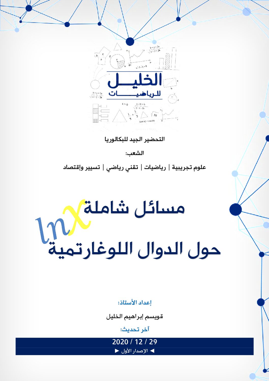 مسائل شاملة حول الدوال اللوغارتمية مرفقة بحلول مفصلة للاستاذ قويسم ابراهيم الخليل 3 ثانوي مجلة الرائد في الرياضيات تمارين الدوال في البكالوريا بين يدك 2021 3 السنة الثالثة ثانوي مادة الرياضيات شعب علوم تجريبية، رياضيات، تقني رياضي ، التحضير الجيد لامتحان شهادة البكالوريا سلاسل تمارين المتتاليات العددية للتحضير للبكالوريا ملفات تعليمية رياضيات سنة ثالثة ثانوي ، يحتوي الملف على تمارين …