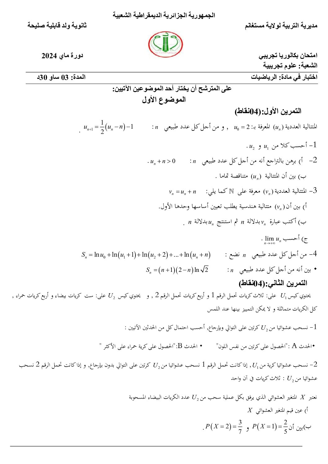 مادة الرياضيات للسنة الثالثة 3 ثانوي دروس مفصلة، فروض واختبارات، تمارين محلولة: نموذج لإمتحان في الفصل الثالث رقم 226- في مادة الرياضيات مستوى السنة الثالثة ثانوي شعب علمية، السنة الدراسية: 2024/2025 مع التصحيح يمكن تصفح الإختبار مباشرة عبر موقع الدراسة الجزائري أو تحميله مباشرة بصيغة PDF …