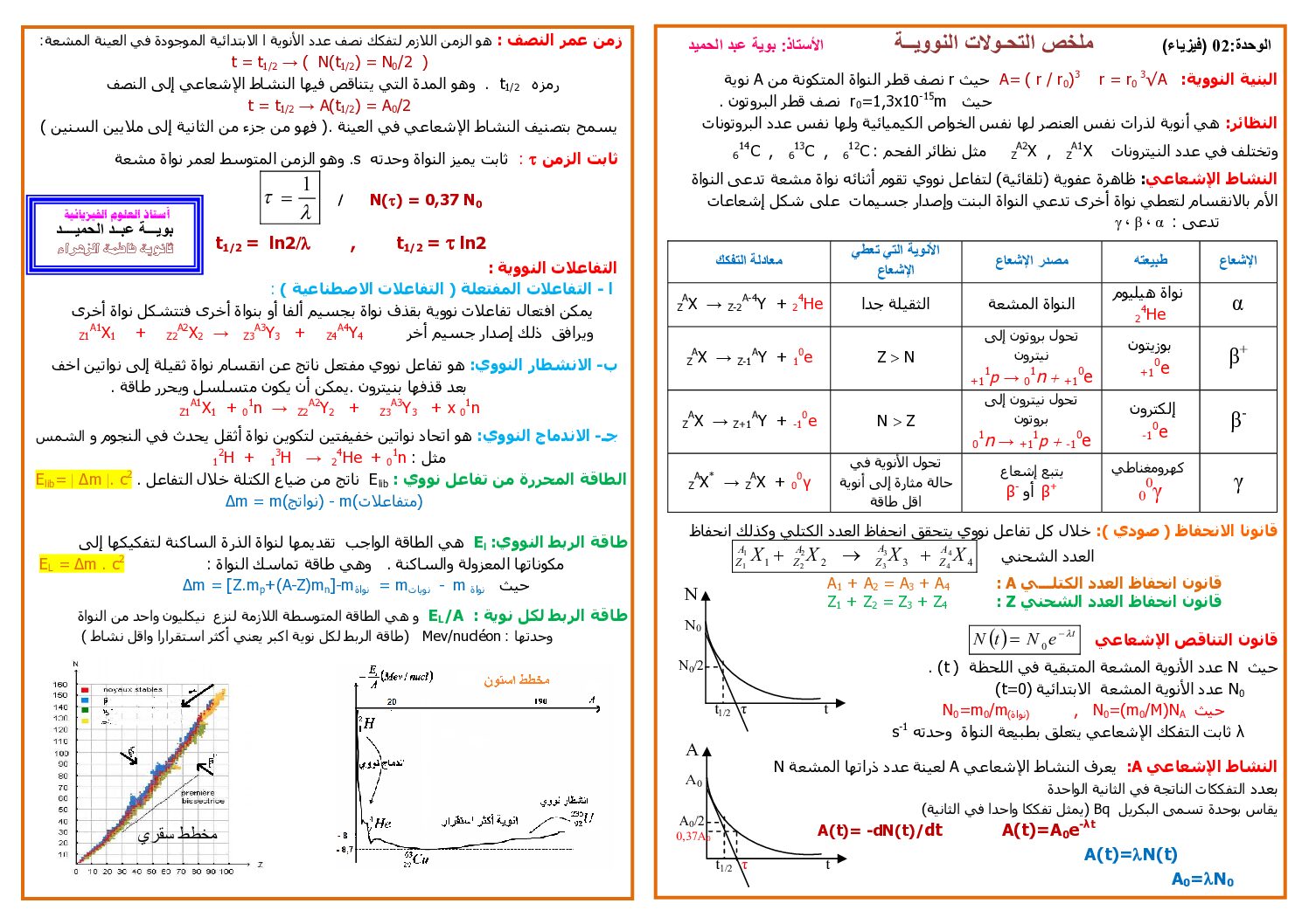 ملخص الوحدة 02 التحولات النووية للاستاذ بوية عبد الحميد 3 ثانوي