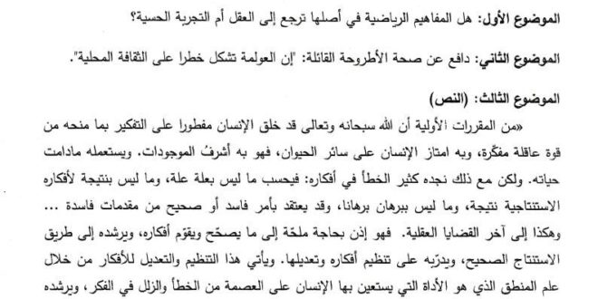 بكالوريا 2013 – اختبار الفلسفة شعبة علوم تجربية + رياضيات