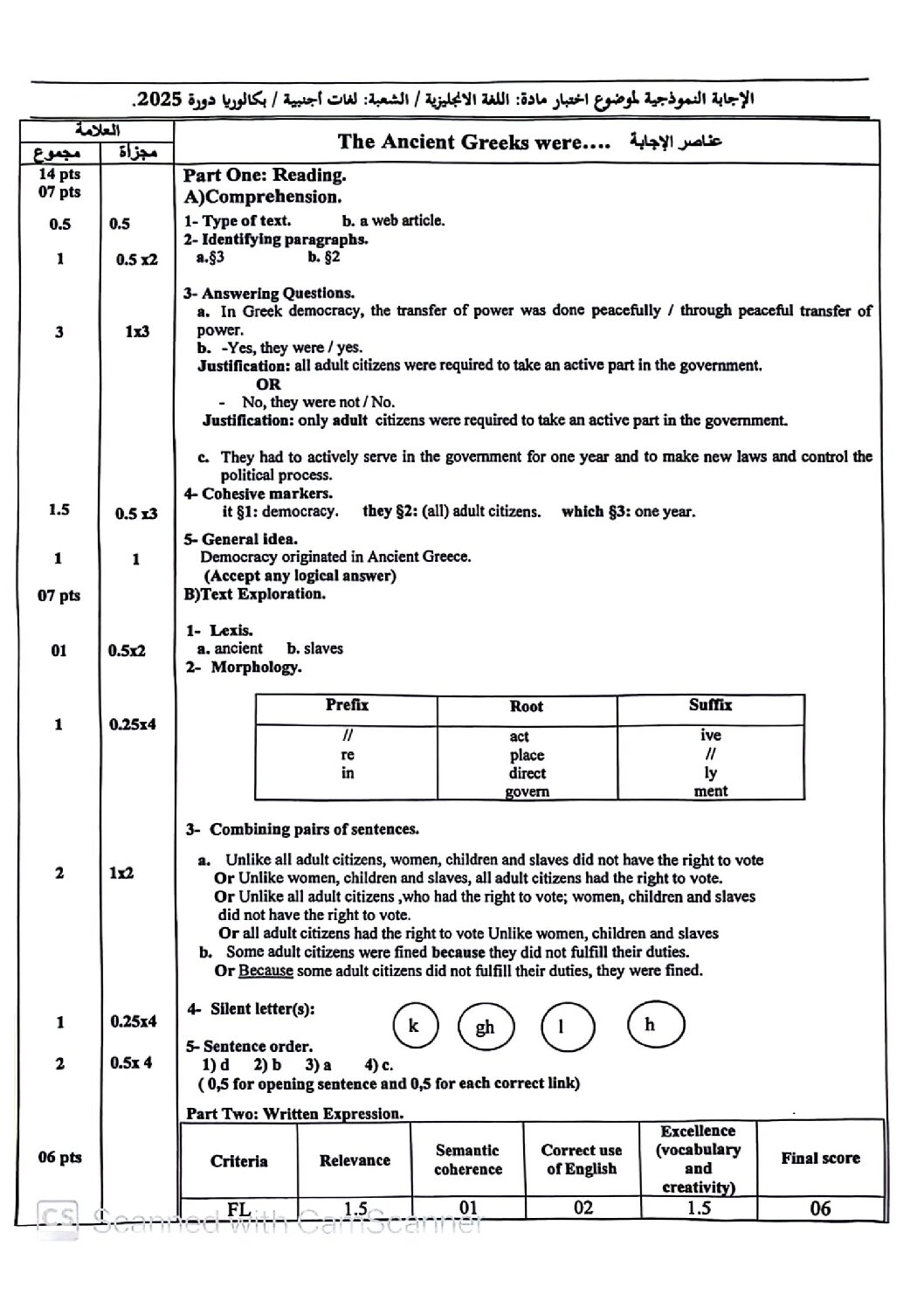 حلول مواضيع شهادة البكالوريا 2025 BAC – الإجابة النموذجية و تصحيح موضوع اختبار مادة اللغة الإنجليزية شعبة لغات أجنبية بكالوريا 2025 :