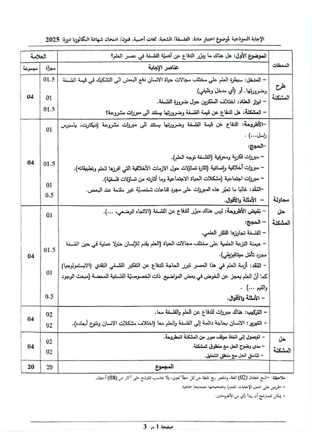 حلول مواضيع شهادة البكالوريا 2025 BAC – الإجابة النموذجية و تصحيح موضوع اختبار مادة الفلسفة شعبة لغات أجنبية بكالوريا 2025 :