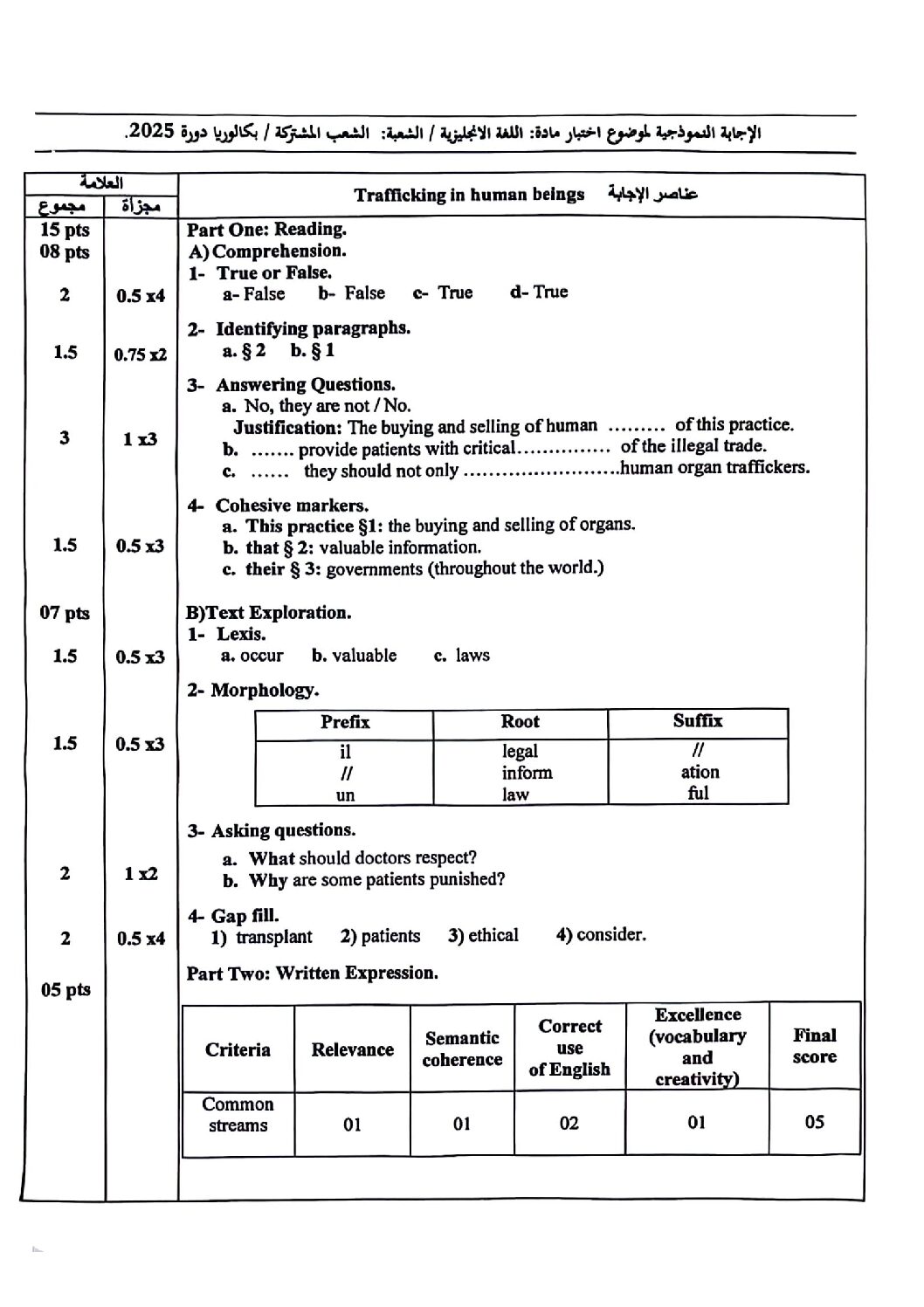 وفيما يلي تصحيح موضوع البكالوريا :