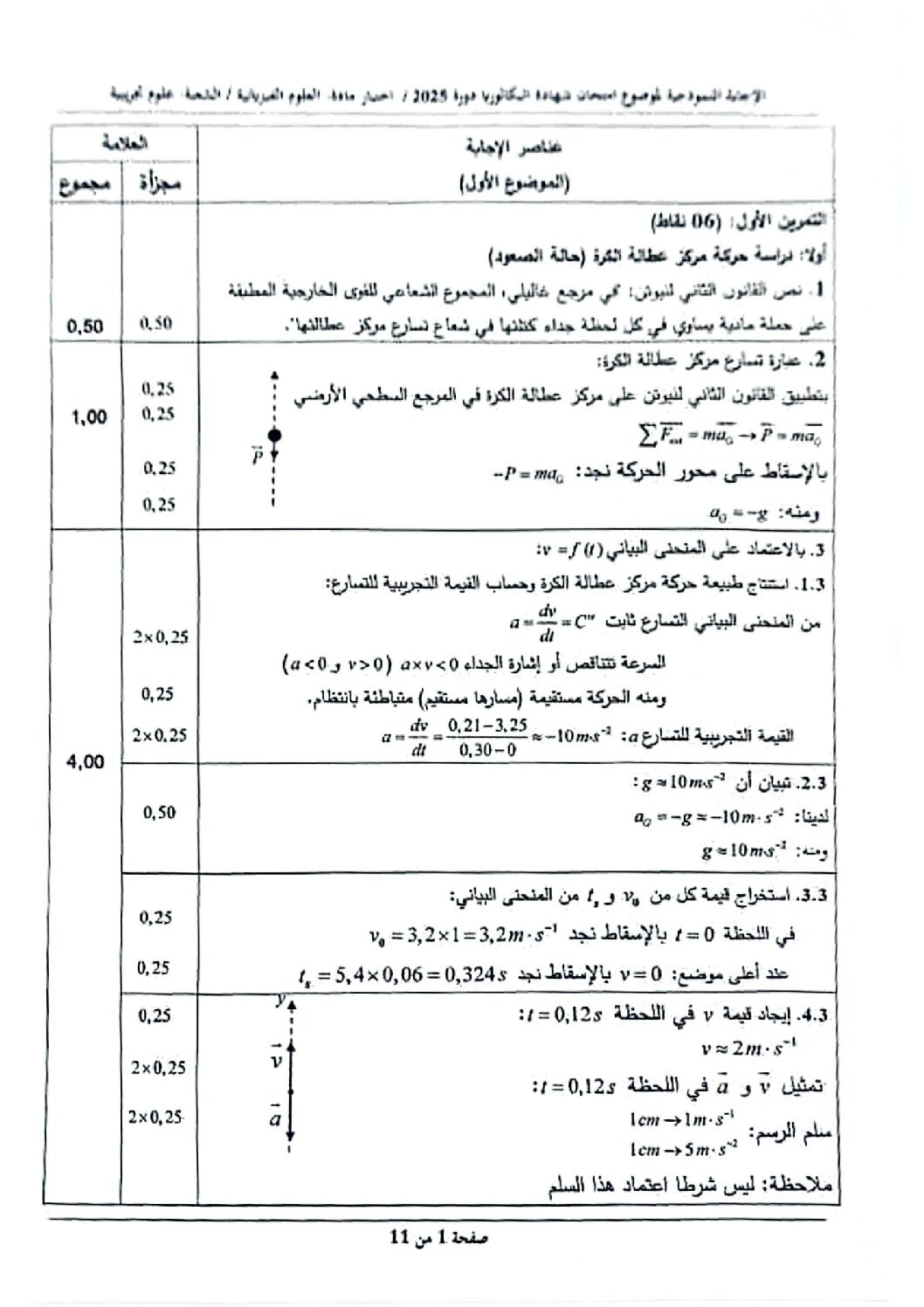 حلول مواضيع شهادة البكالوريا 2025 BAC – الإجابة النموذجية و تصحيح موضوع اختبار مادة العلوم الفيزيائية شعبة علوم تجريبية بكالوريا 2025: