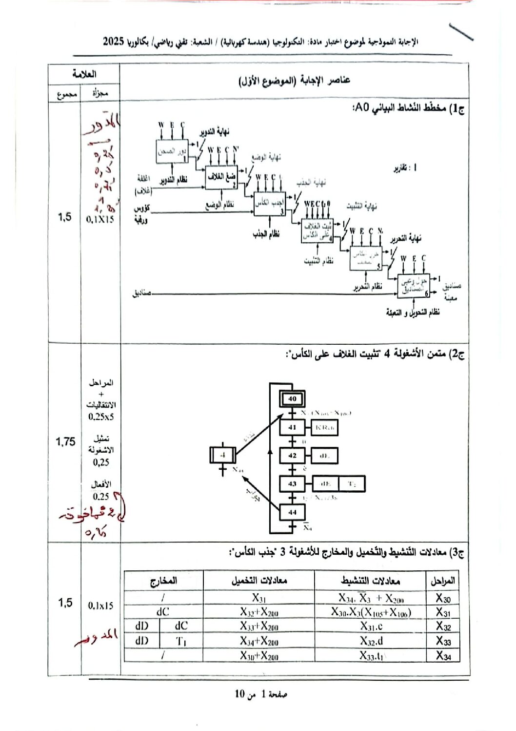 حلول مواضيع شهادة البكالوريا 2025 BAC – الإجابة النموذجية و تصحيح موضوع اختبار مادة التكنولوجيا الهندسة الكهربائية شعبة تقني رياضي بكالوريا 2025 :