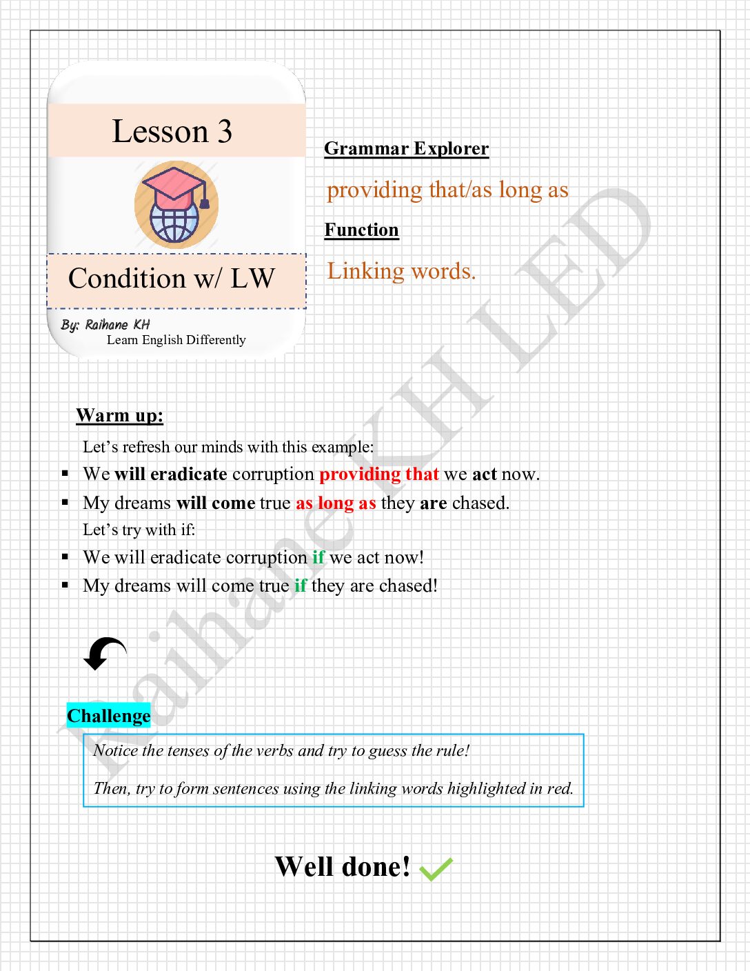 Ms Rayhan English Lesson 03 Providing that as long as 3AS ملخص التحضير للبكالوريا Make this day amazing BAC Motivation 3AS التحضير الجيد للبكالوريا في مادة اللغة الانجليزية للسنة الثالثة 3 ثانوي جميع الشعب