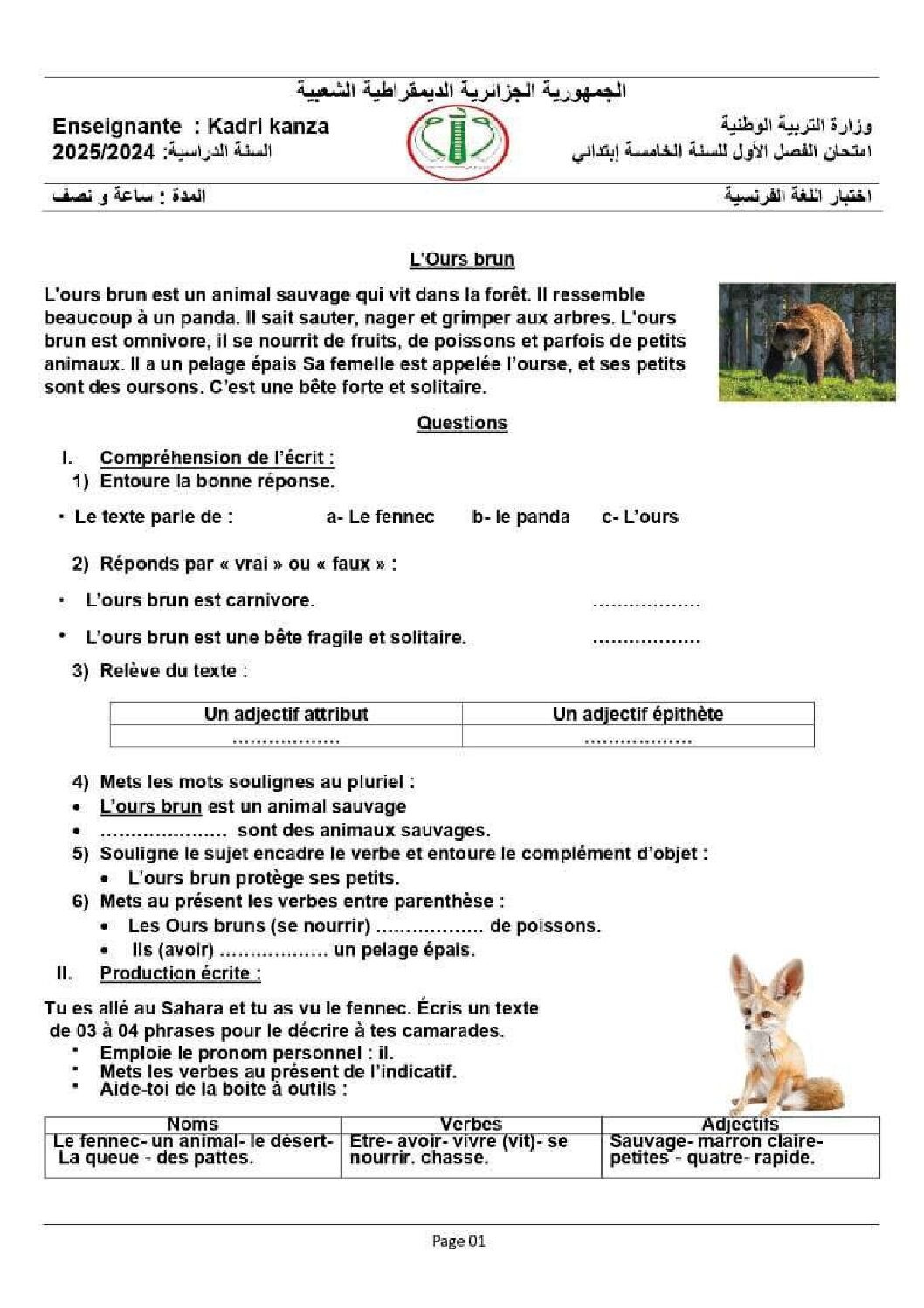 أكمل القراءة »إختبار الفصل الأول في اللغة الفرنسية السنة الخامسة ابتدائي رقم 141 مع التصحيح