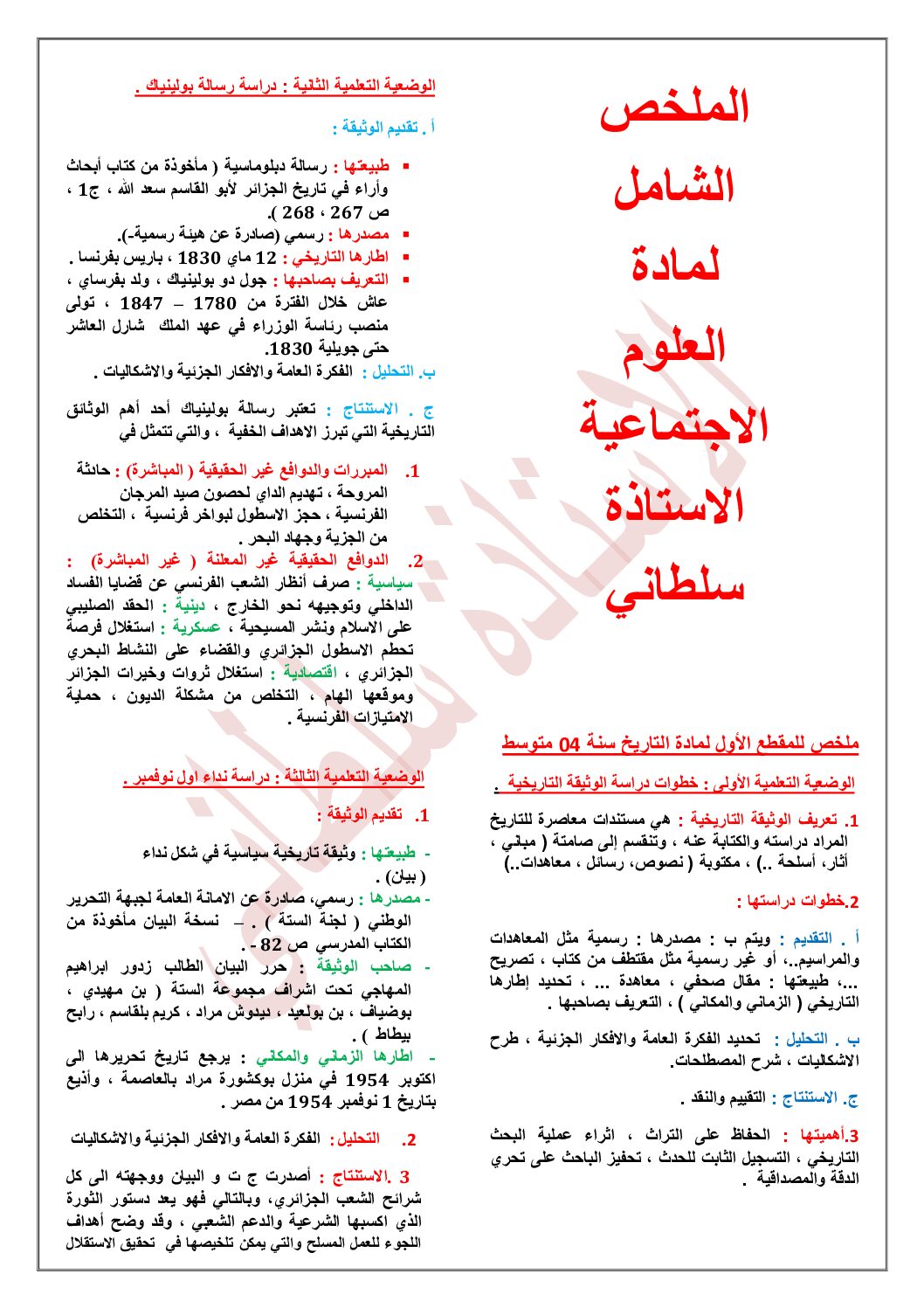أكمل القراءة »الملخص الشامل في التاريخ والجغرافيا والتربية المدنية للاستاذة سلطاني 4 متوسط