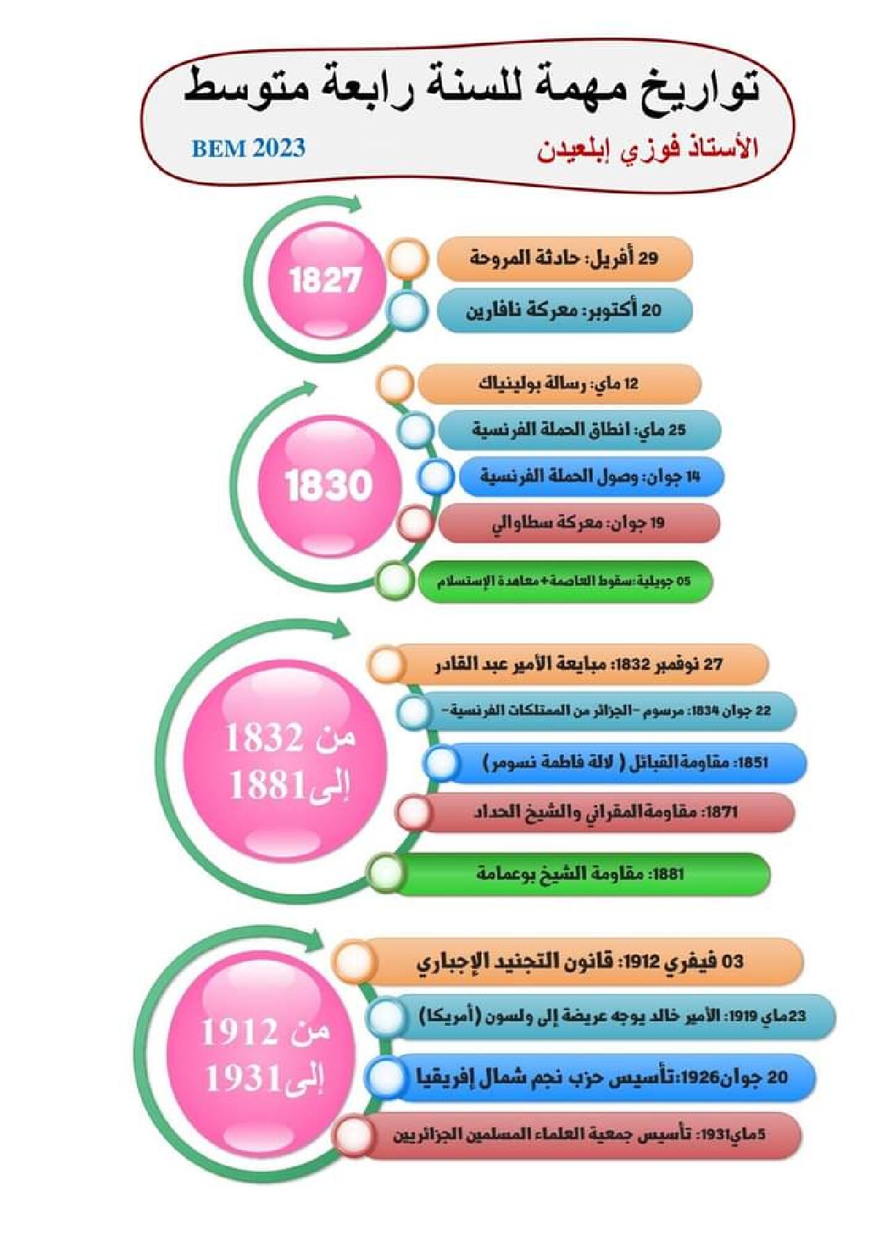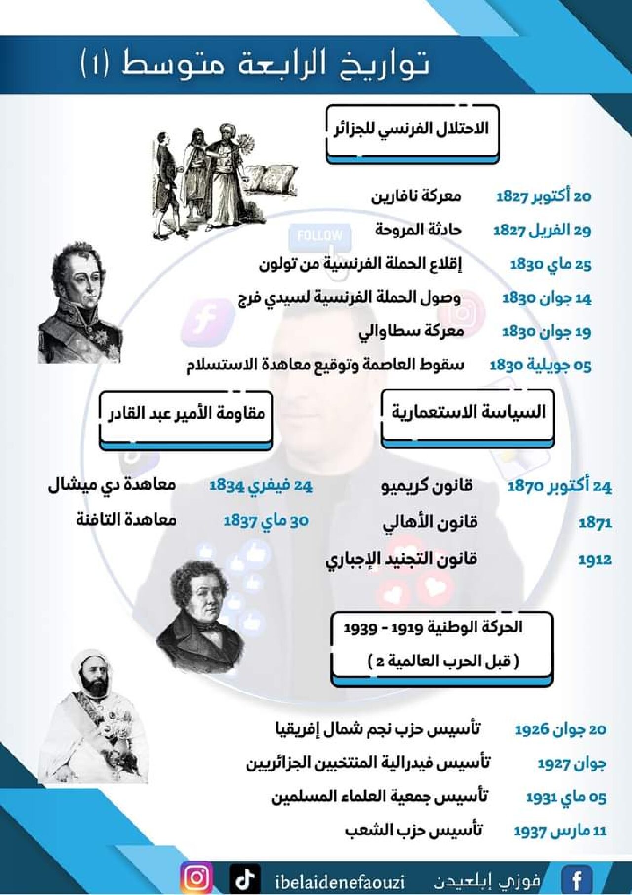أكمل القراءة »تجميعة أهم التواريخ لتحضير شهادة التعليم المتوسط للأستاذ فوزي إبلعيدن 4 متوسط