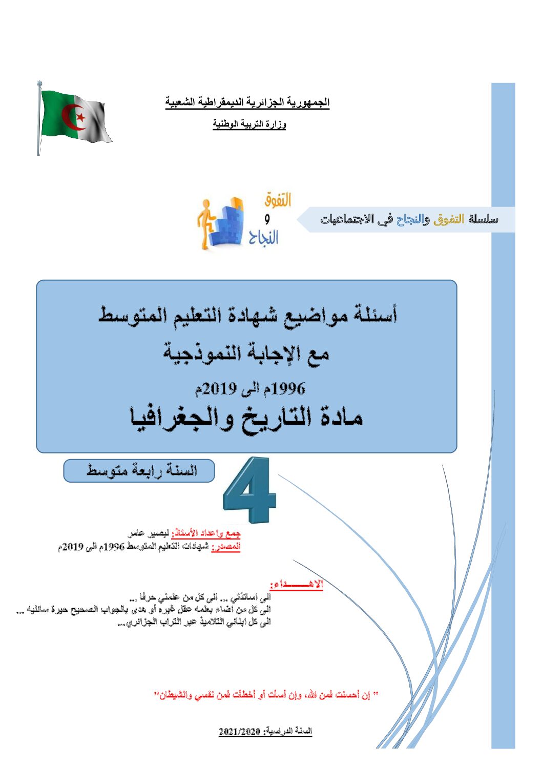 أكمل القراءة »أسئلة مواضيع شهادة التعليم المتوسط مع الإجابة النموذجية في مادة التاريخ و الجغرافيا 4 متوسط