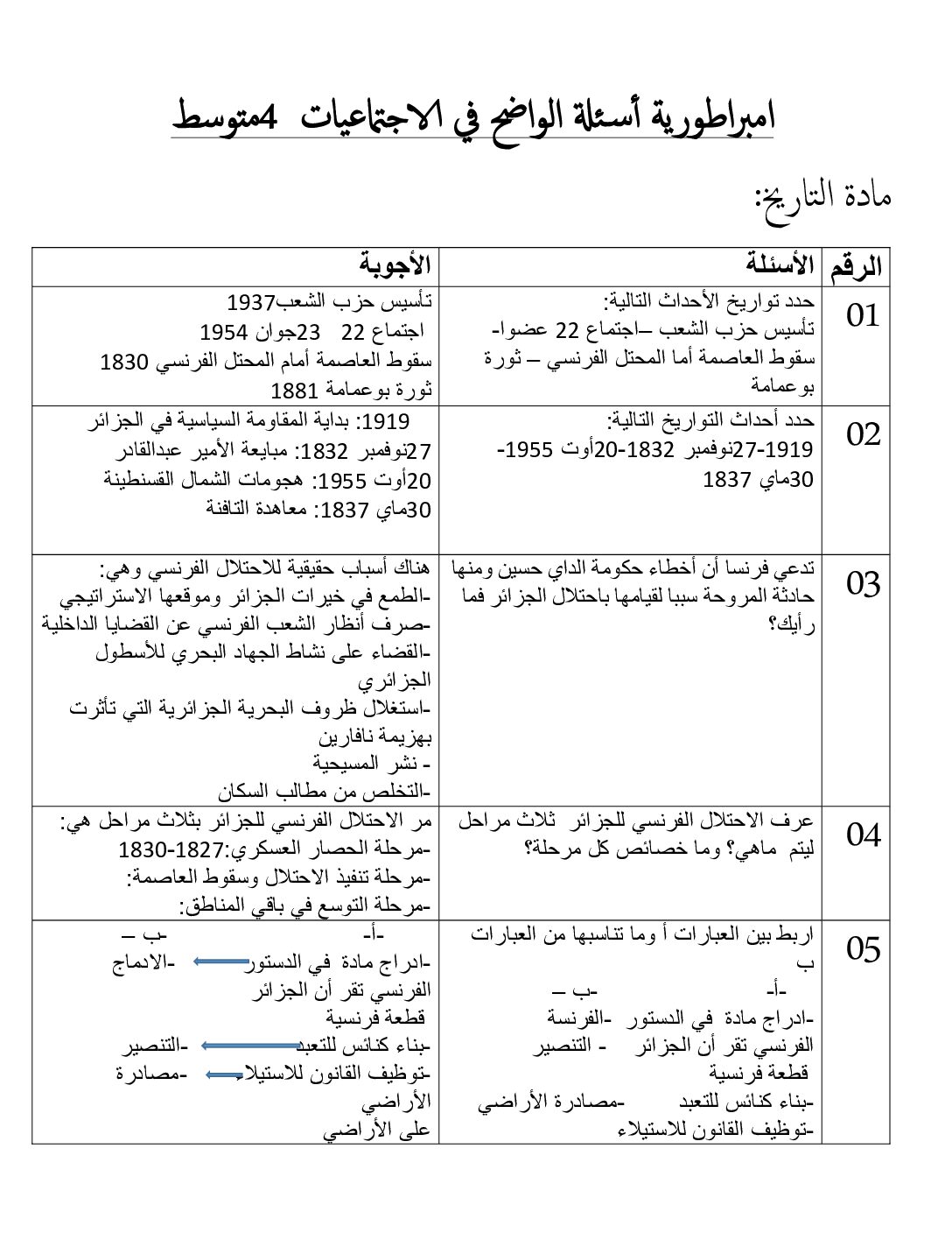 أكمل القراءة »أسئلة و أجوبة في مادة التاريخ للاستاذ دحمان عبد الحميد 4 متوسط